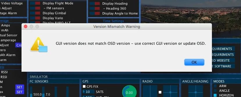 If you plug in the board and see this when you launch the Scarab OSD configuration tool, it means you’ll need to update the Scarab OSD firmware:
