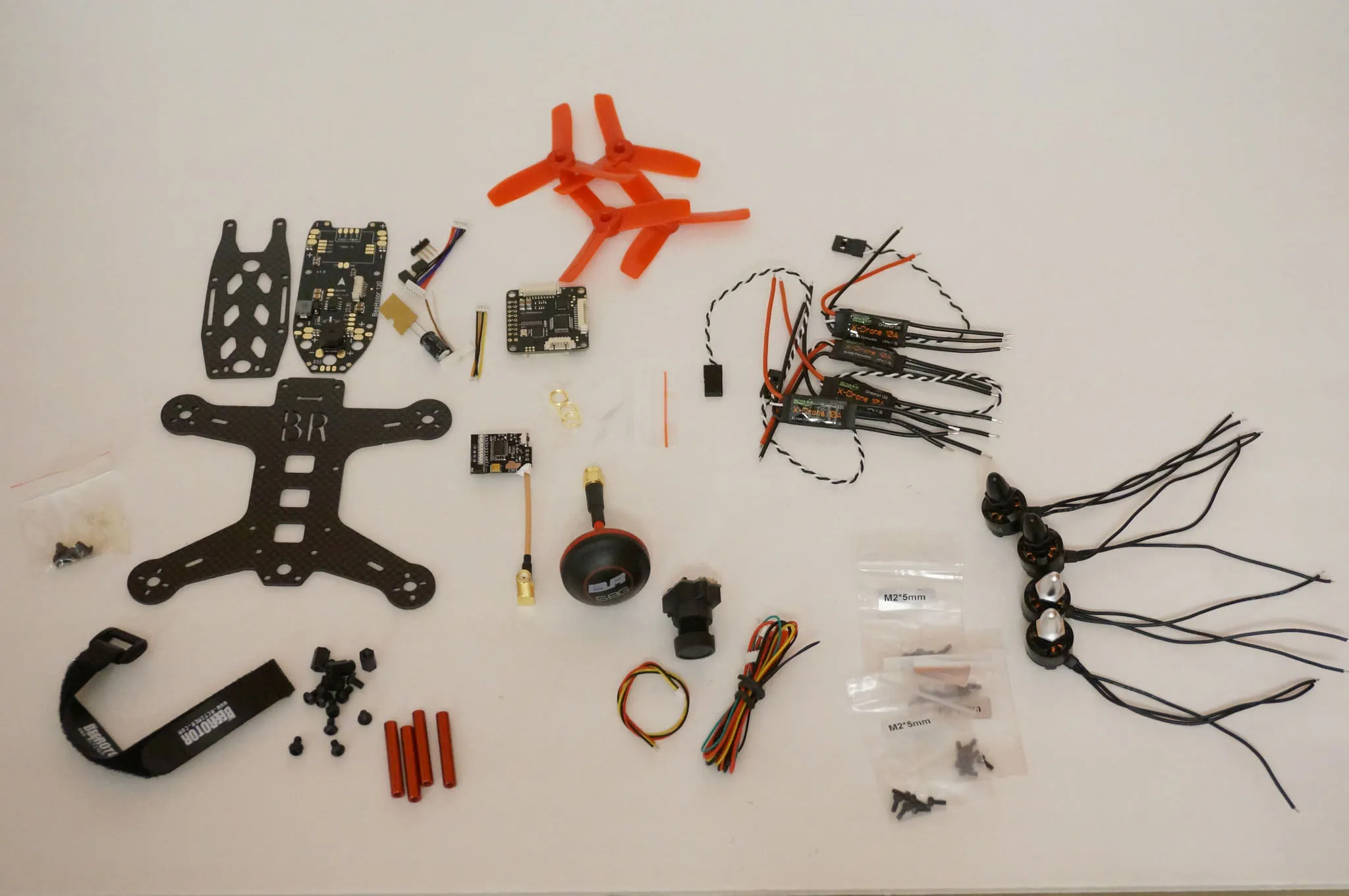 Everything you need except the transmitter and receiver, battery and charger is included in the kit! You’ll also want some good goggles if you’re just getting started.