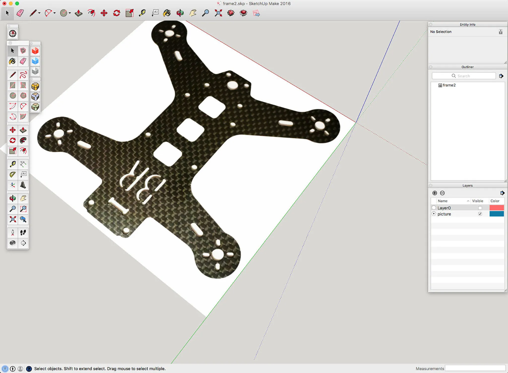 From here, you’ll want to do the normal Sketchup things, like trace out the image and extrude out the parts you want to create. The 3D modeling is another topic in itself, but if you’re new and looking to learn a software package, know that this was my first and only part I’ve done using SketchUP. I’ve since switched to Fusion360, so perhaps I’ll do a guide on this in the future.