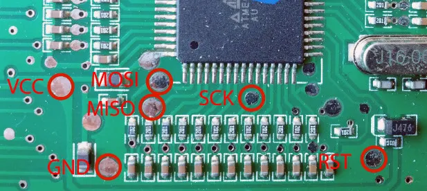 You can also see I soldered some pin headers on the In System Programmer (ISP) header.