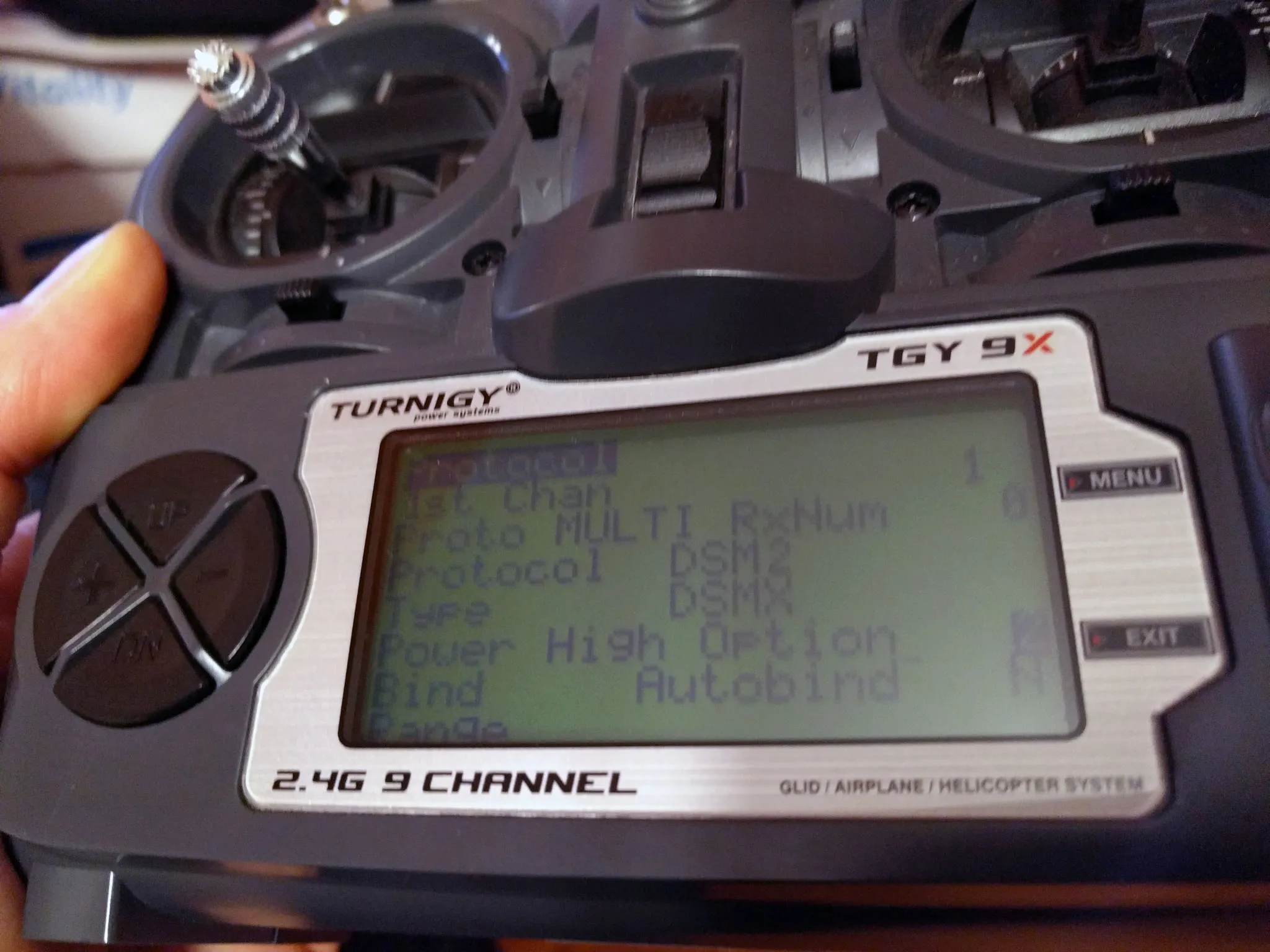 Binding with ER9X using the serial protocol is awesome. After you get ER9X installed and the radio module in the back, setup a new model and open the protocol page: