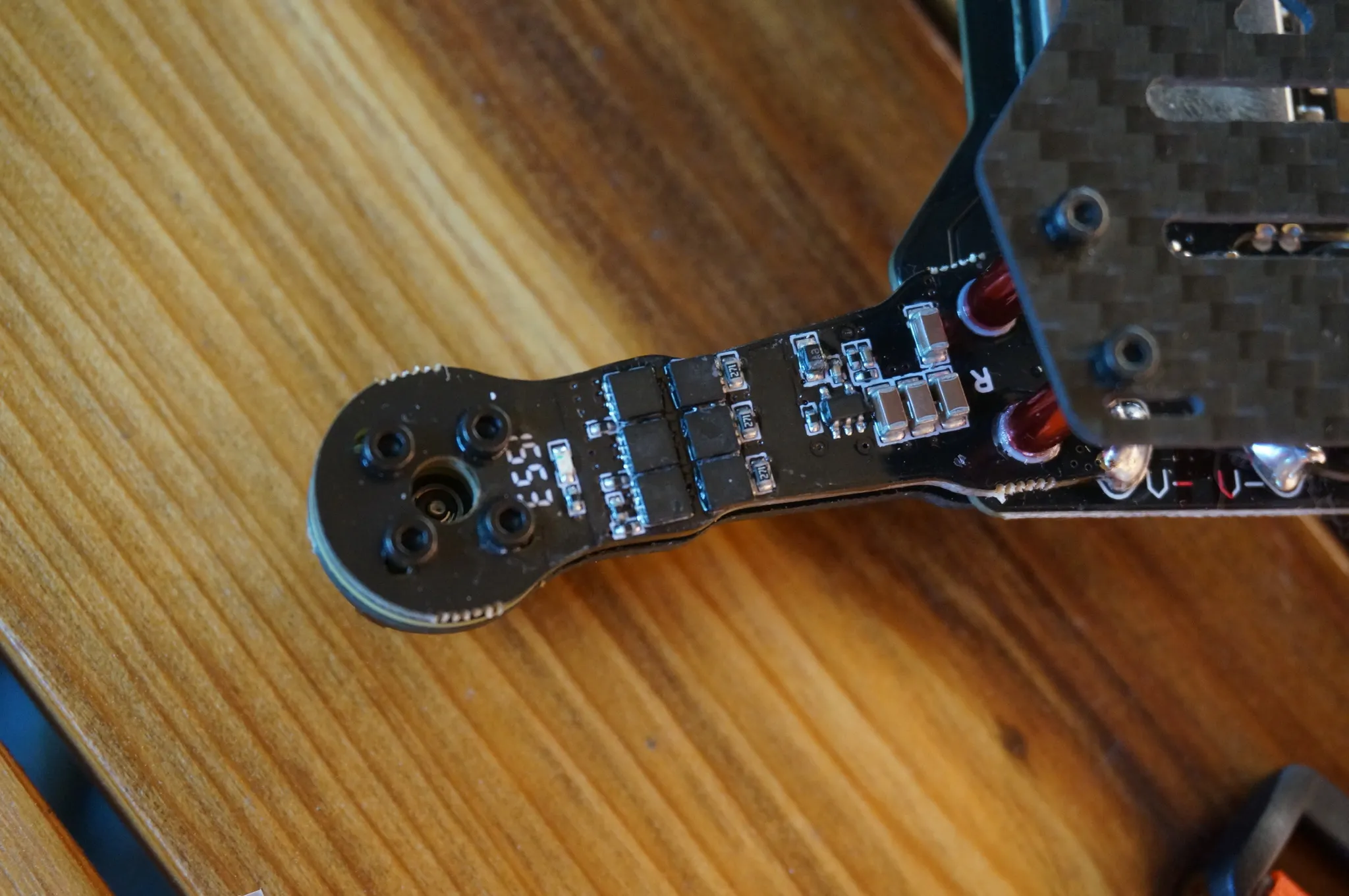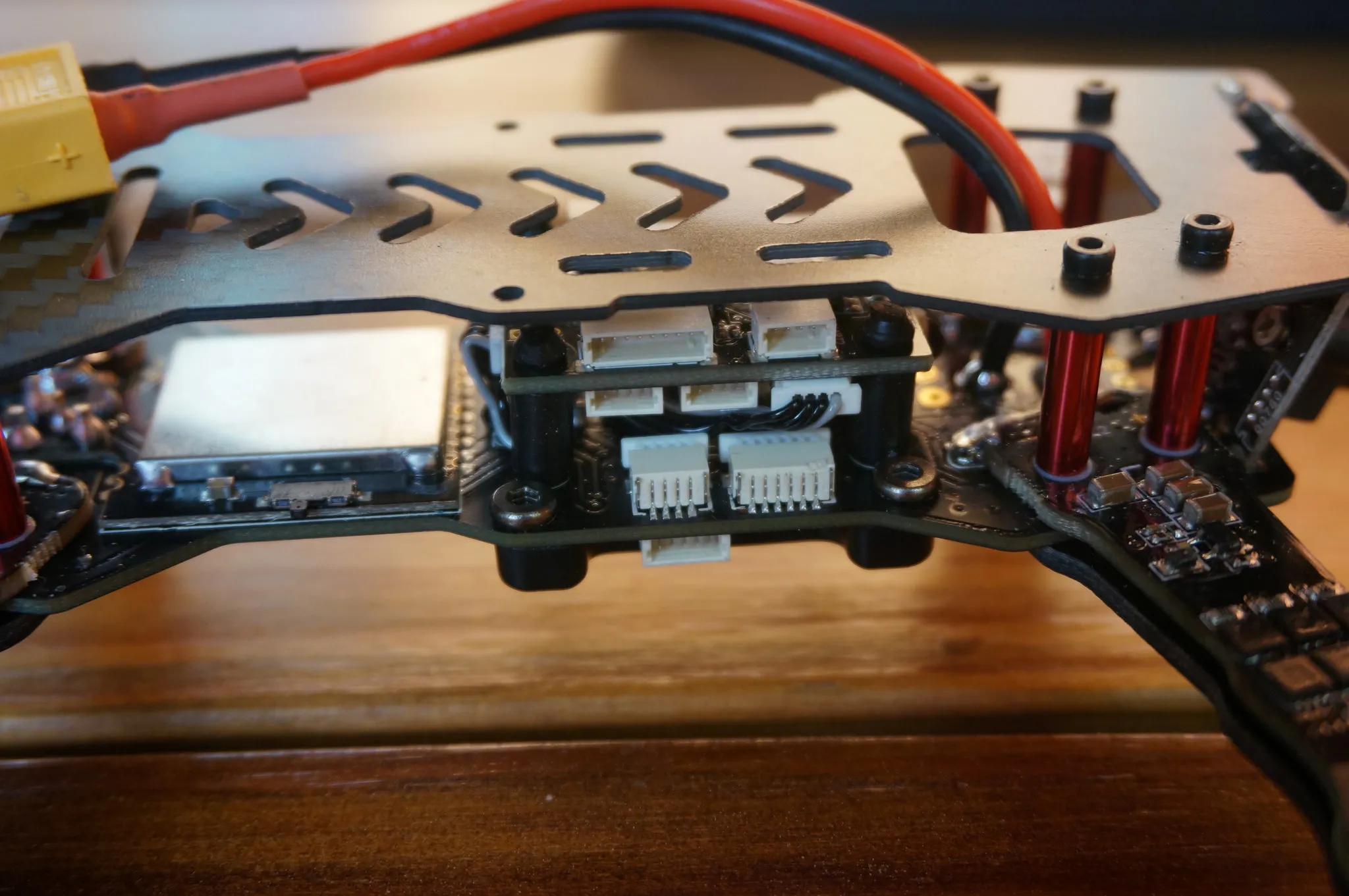 The bottom piece of the arms has an integrated DYS XM10 ESC.