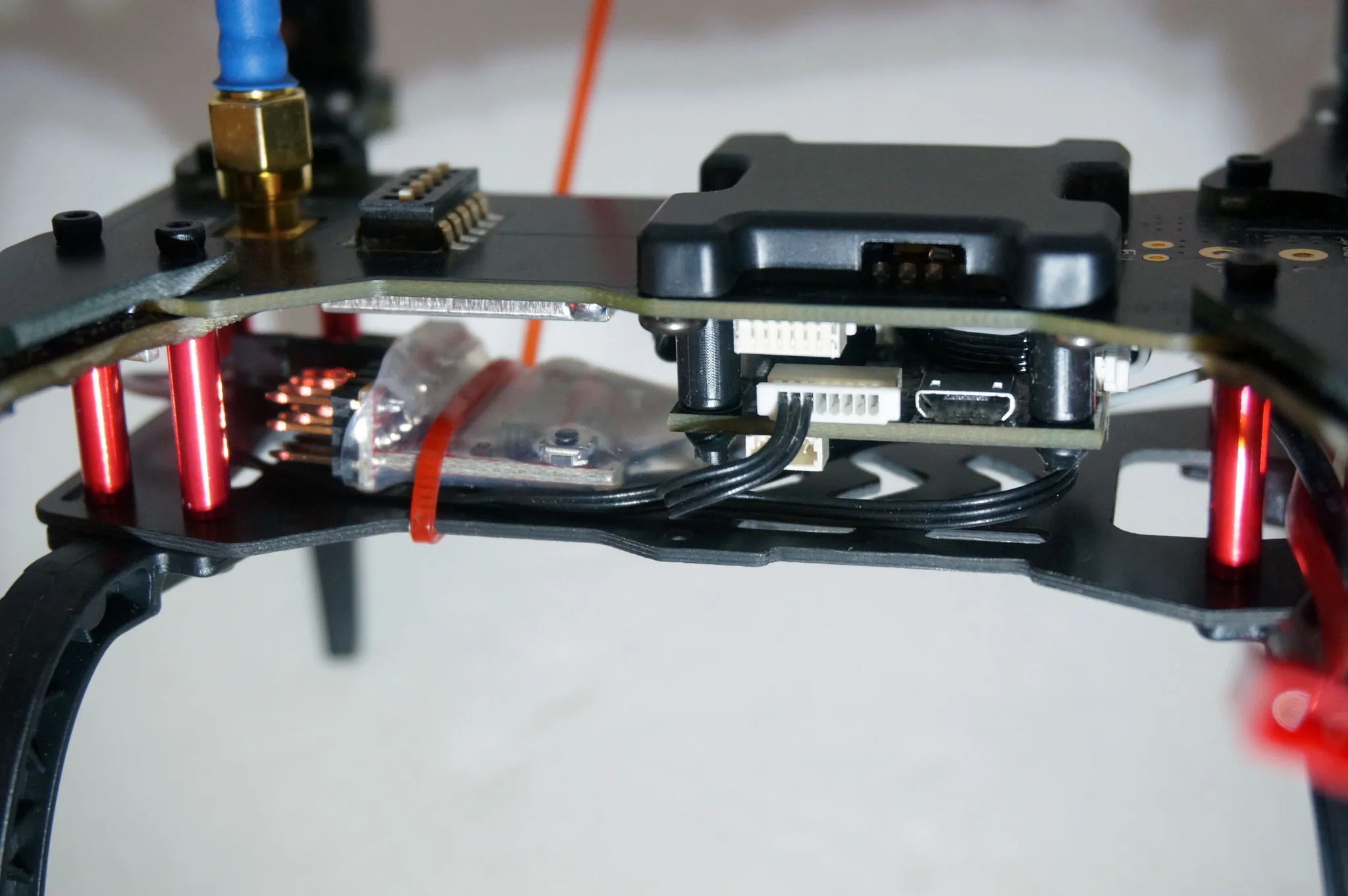 Interestingly, the flight controller is not hard mounted. It’s soft mounted on these rubbery pegs.