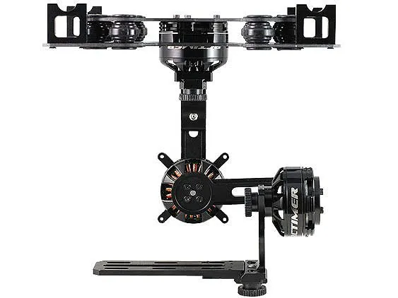We could just strap the camera straight to a quad-copter that is big enough to carry a 397g payload, but the video would be pretty shaky. For silky smooth footage, we’ll carry the camera with the best brushless motor gimbal available for this size camera, an Rctimer ASP Brushless Gimbal.
