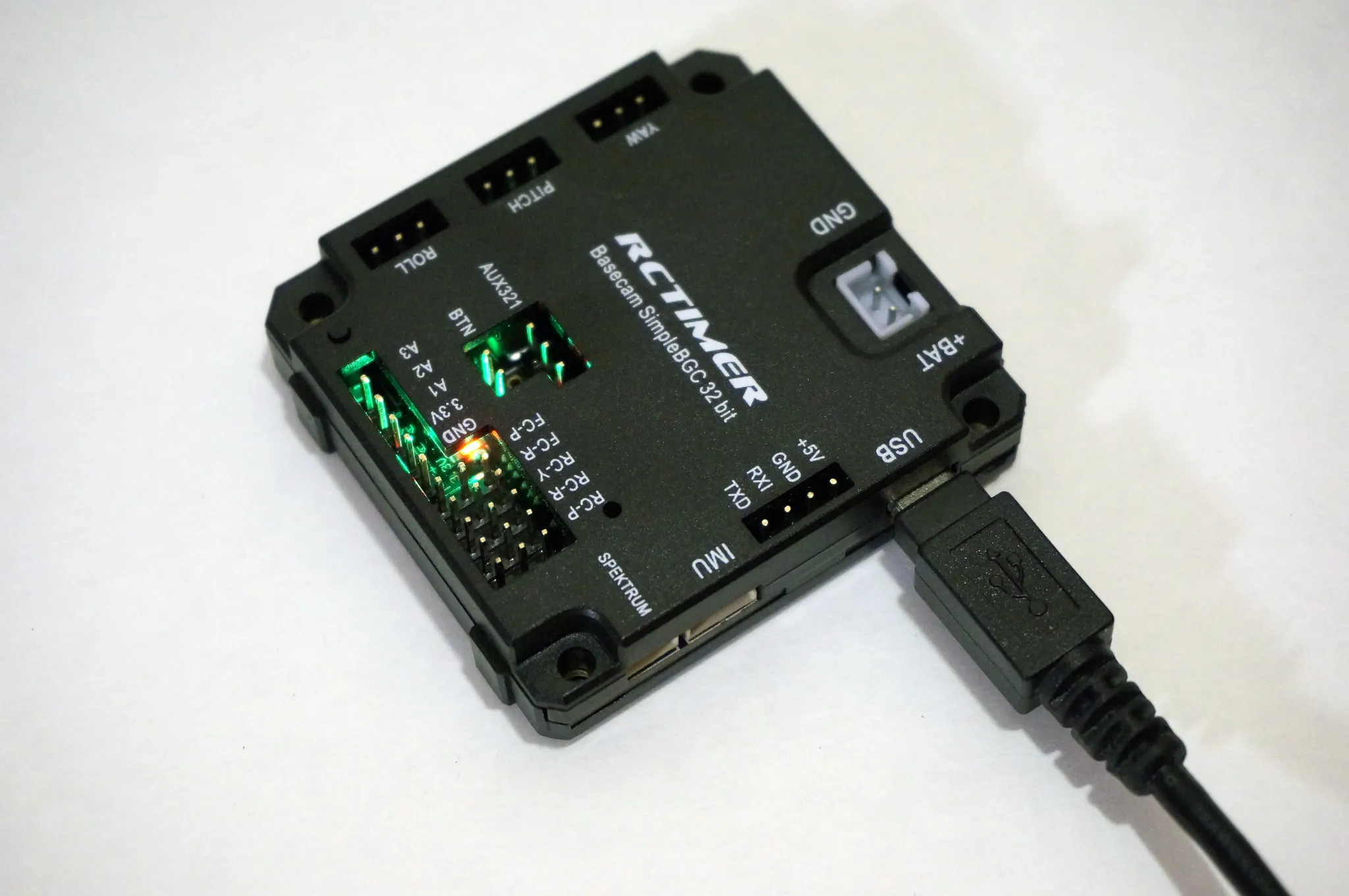 This runs AlexMos’ fantastic SimpleBGC firmware. The design is licensed out to hardware manufacturers, like Rctimer.