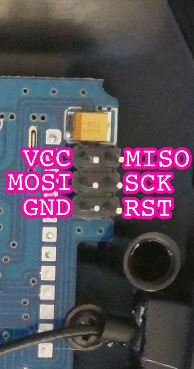 To program the module connect your USBASP like so, if you installed the headers on the back like I did in the section above.