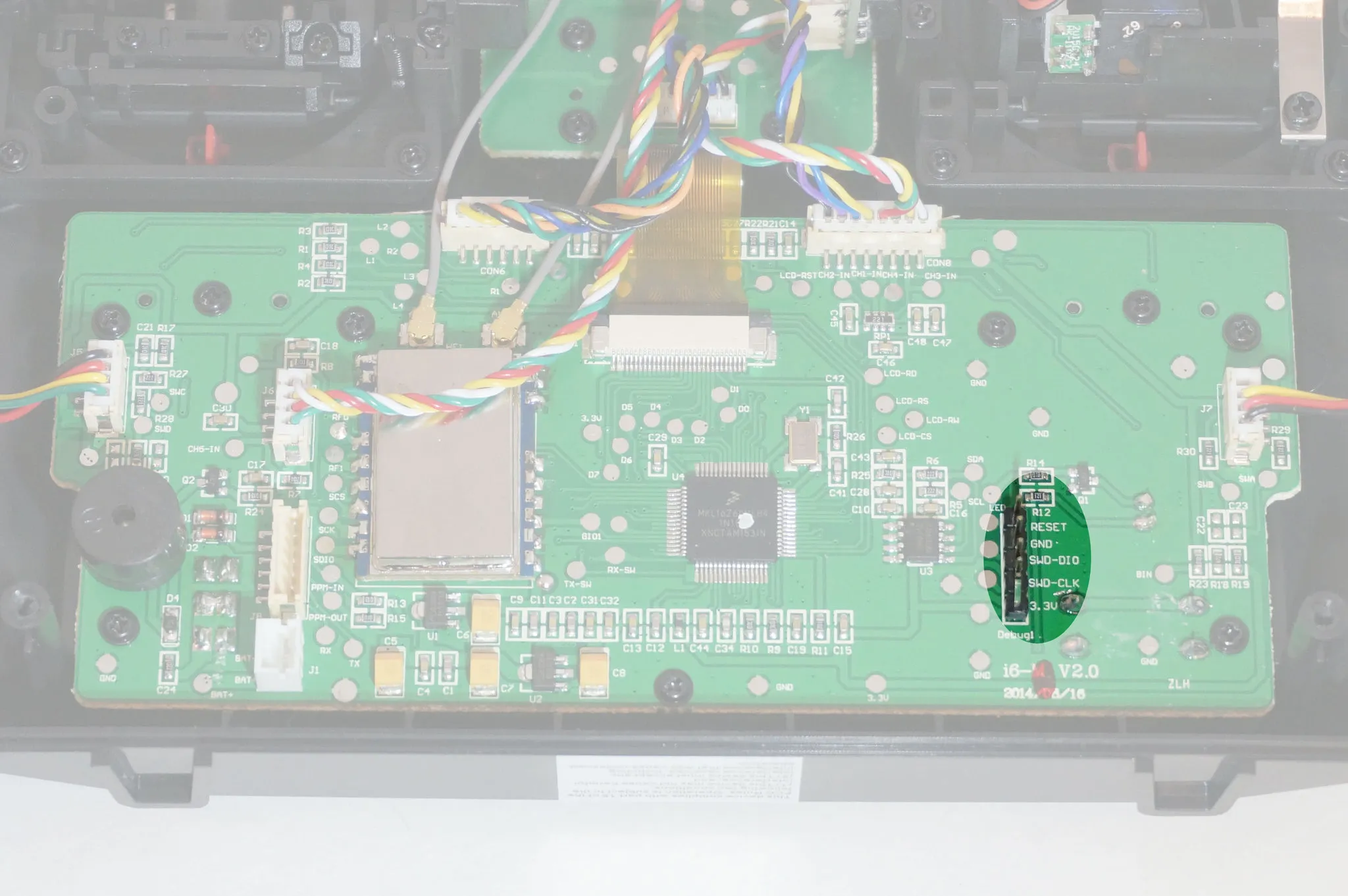 Note the two antennas for the diversity transmitter and MKL16Z64VLH4 Freescale Kinetis microcontroller Datasheet is here