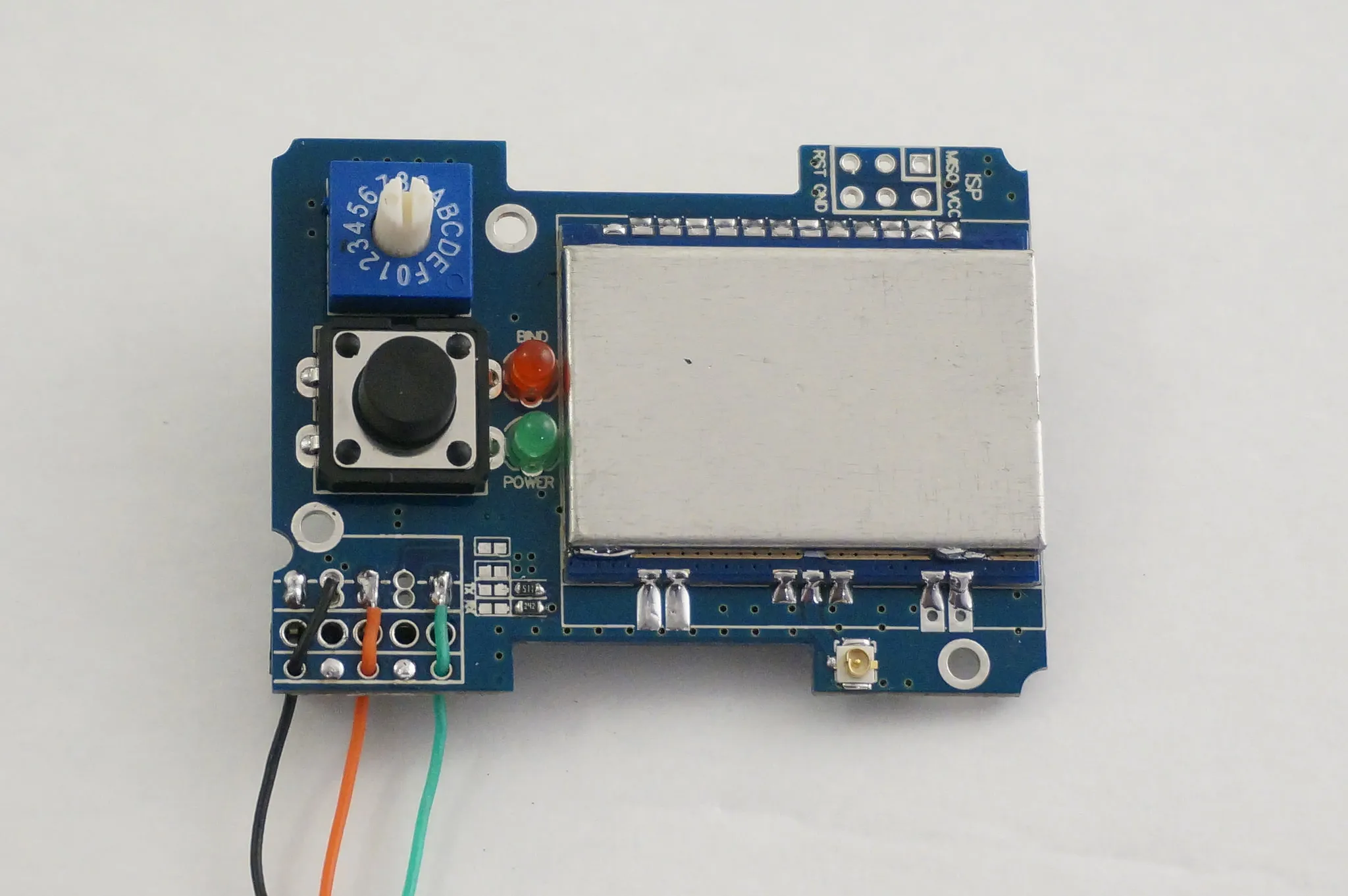 And solder on the ISP header so you can re-program the module later without removing it. I soldered it on the back side, so be aware that the pins will be flipped from the normal ISP header. I give the pinouts below in the 4-in-1 DIY TX Module Programming section.