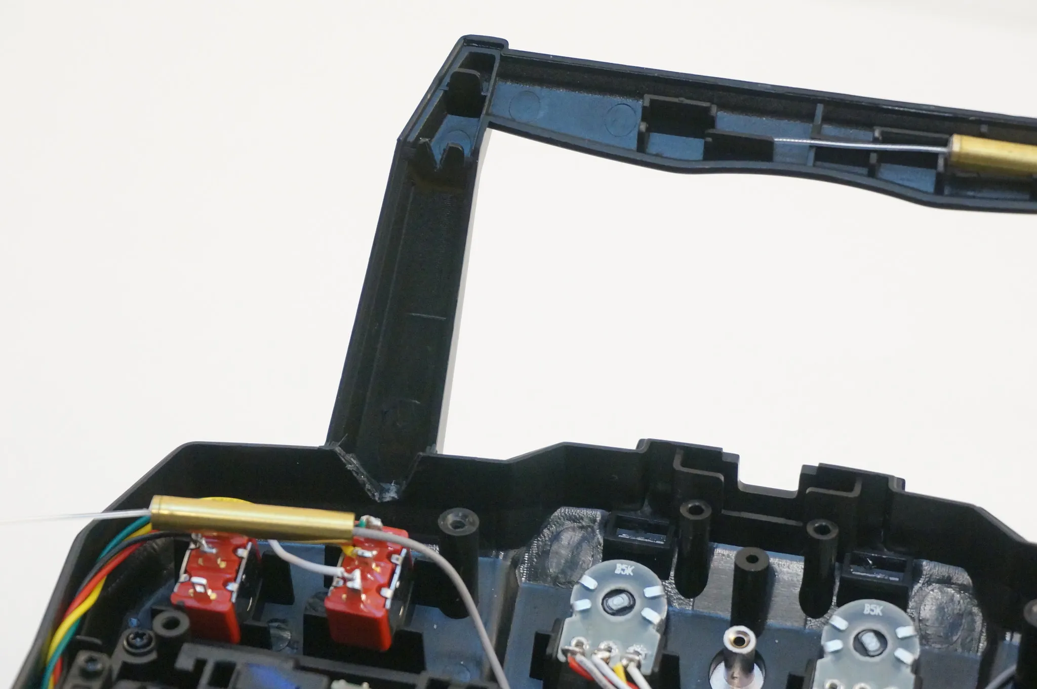 Re-routed the antenna into the handle by cutting a v shape in the little tabs. I used wire clippers for this.