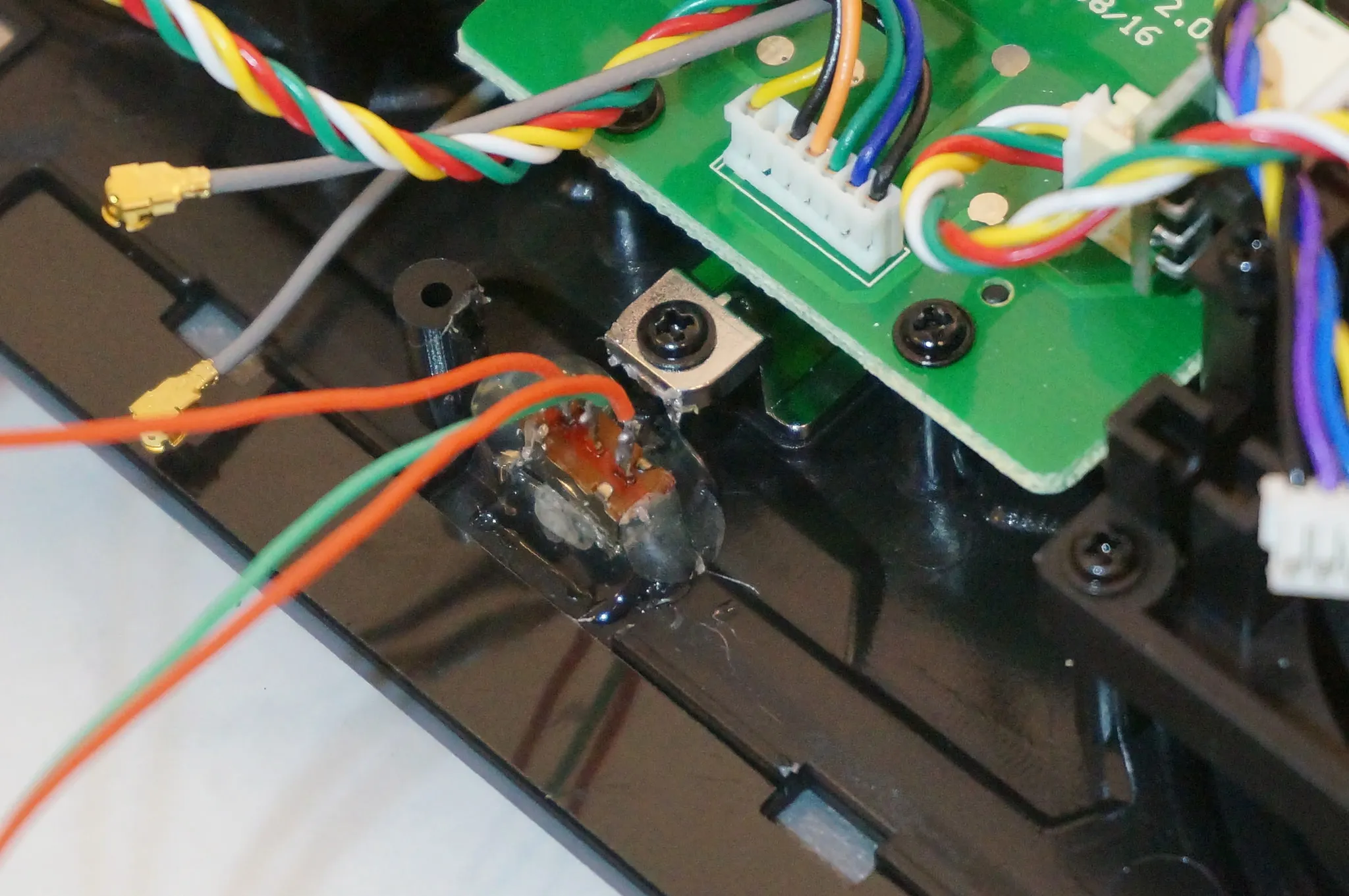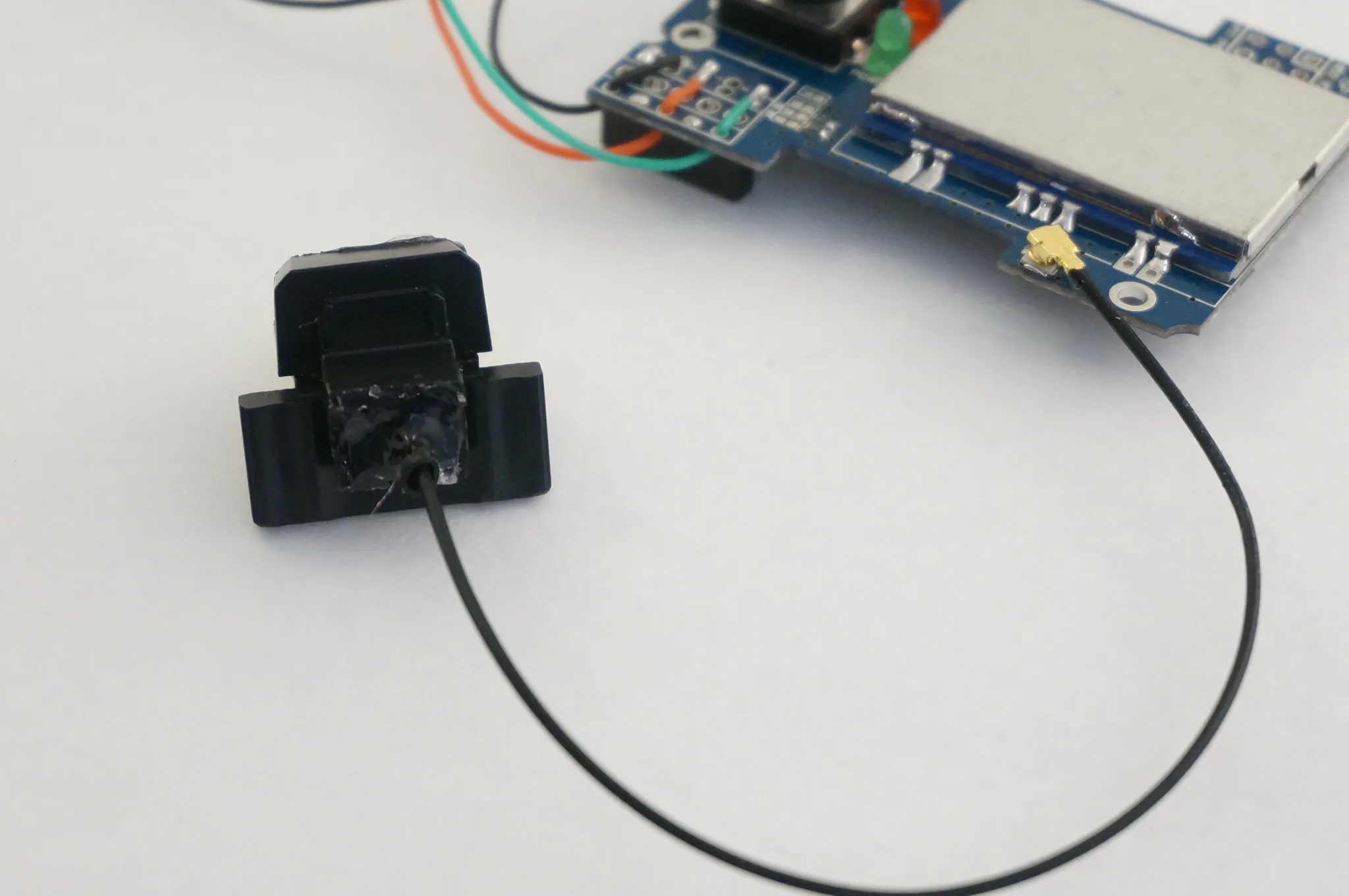 Then I secured the antenna with a small dab of hot glue.