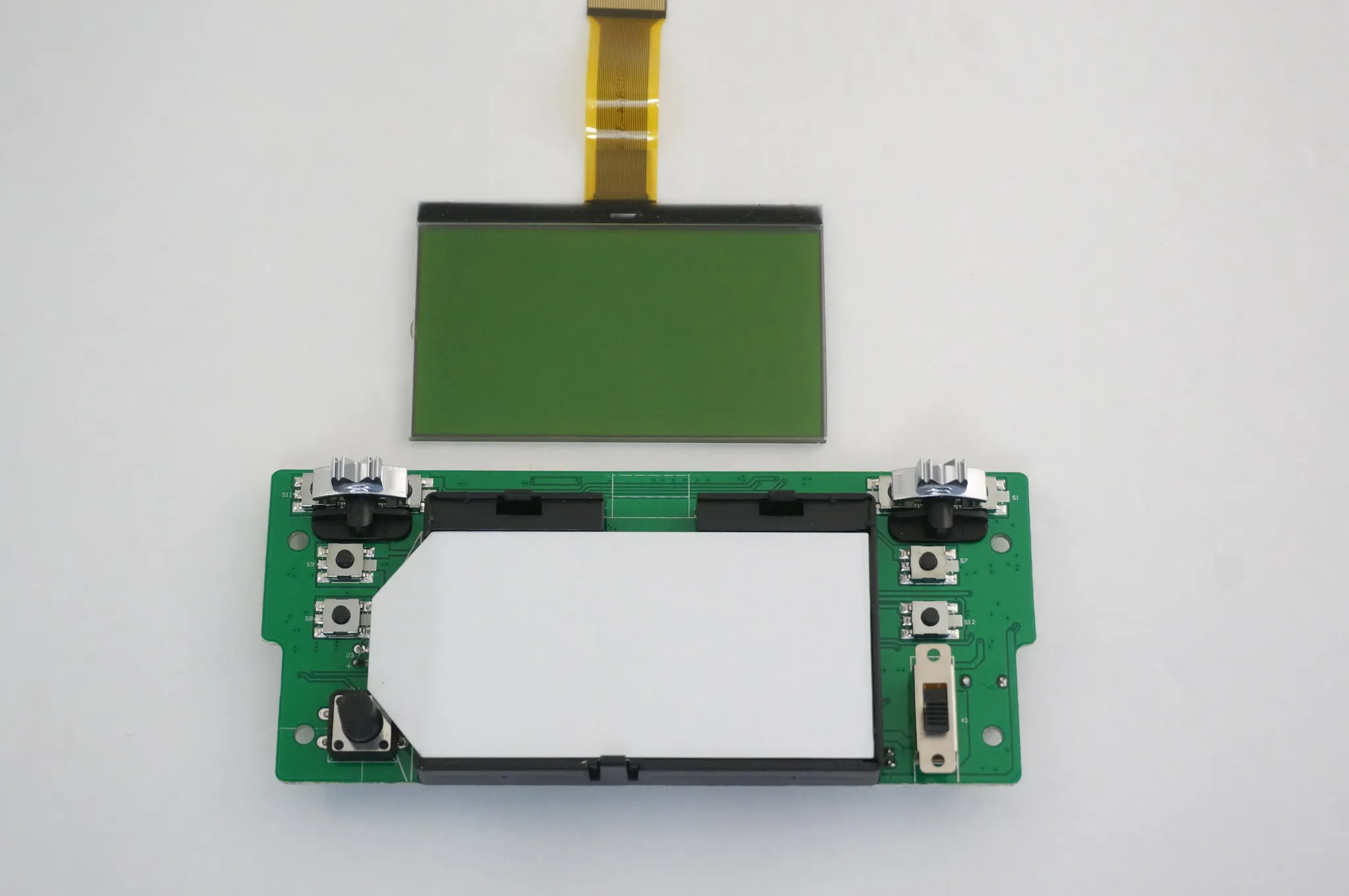 The backlight is soldered in place, but we can see the other side of the PCB by pulling it up gently.