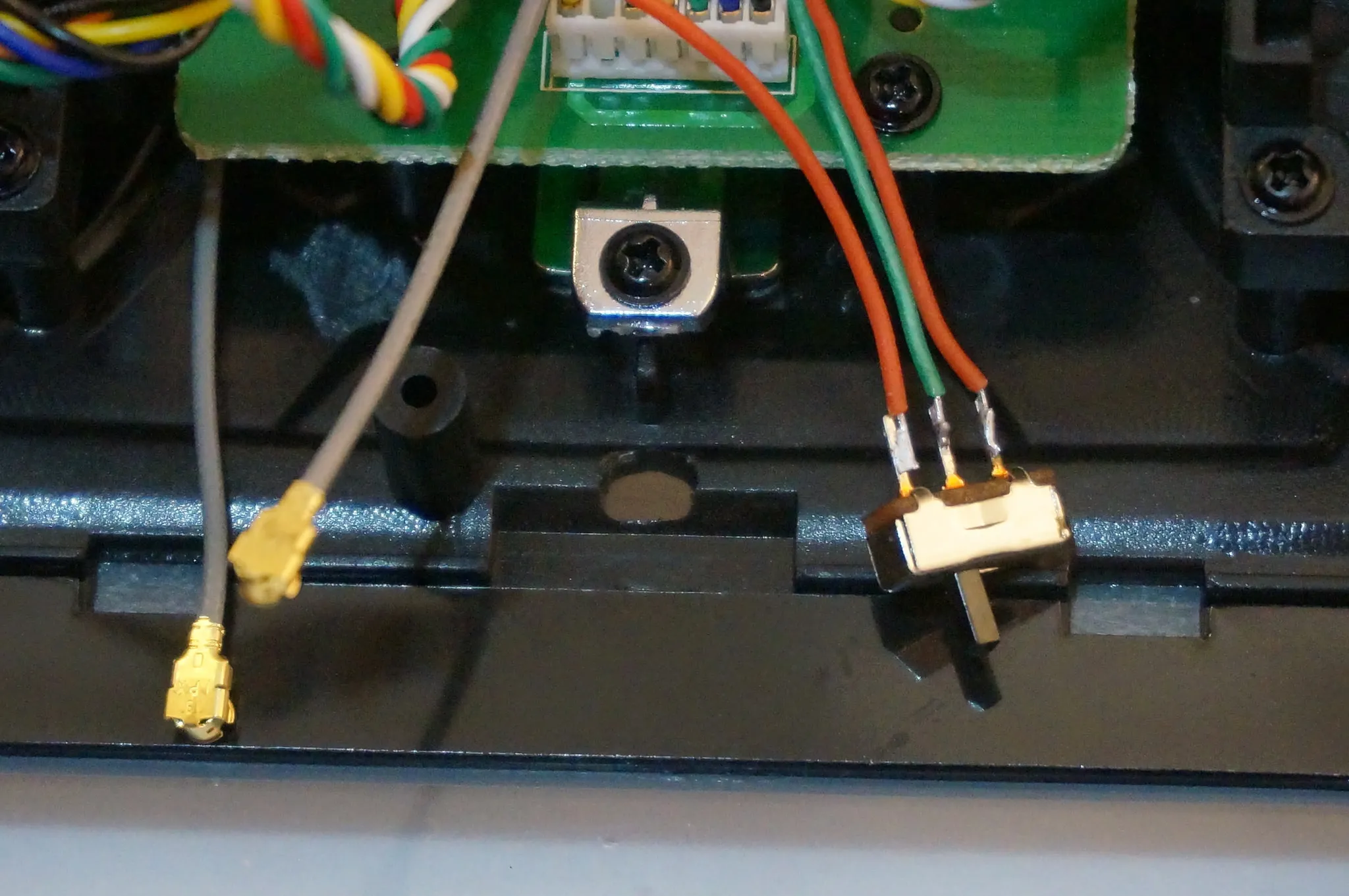 Solder one side of the switch to the internal radio module.