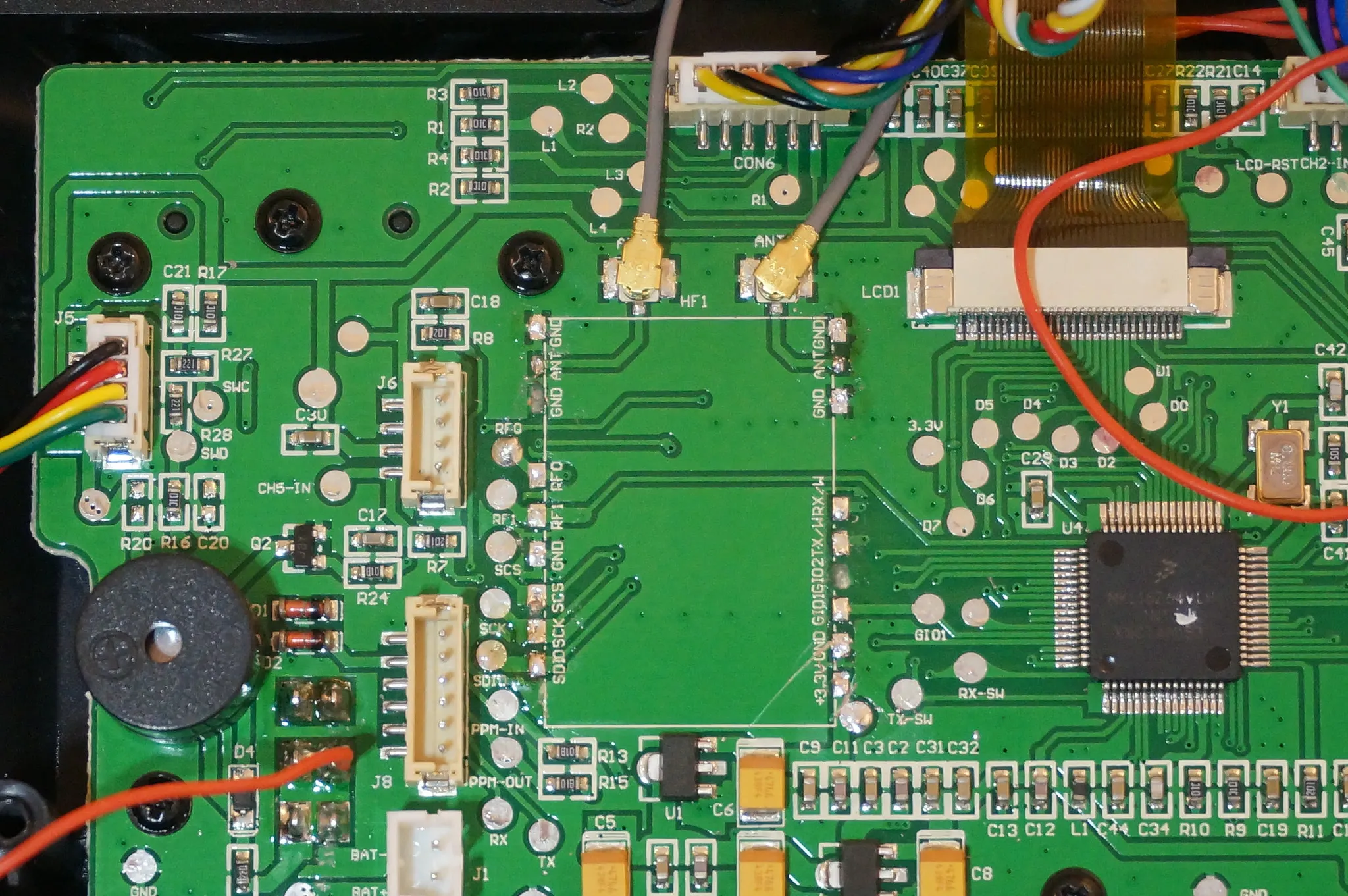 For this, I’m going to use a switch. You could just cut the trace as described below, to disable the internal module entirely, which would be fine, but the internal module should be a few MS faster than the DIY module, since the internal module is directly connected to the main MCU and does not need PPM conversion like the module. Therefore, it is slightly better to use the internal module for FlySky receivers, even though the DIY module does support FlySky RX.