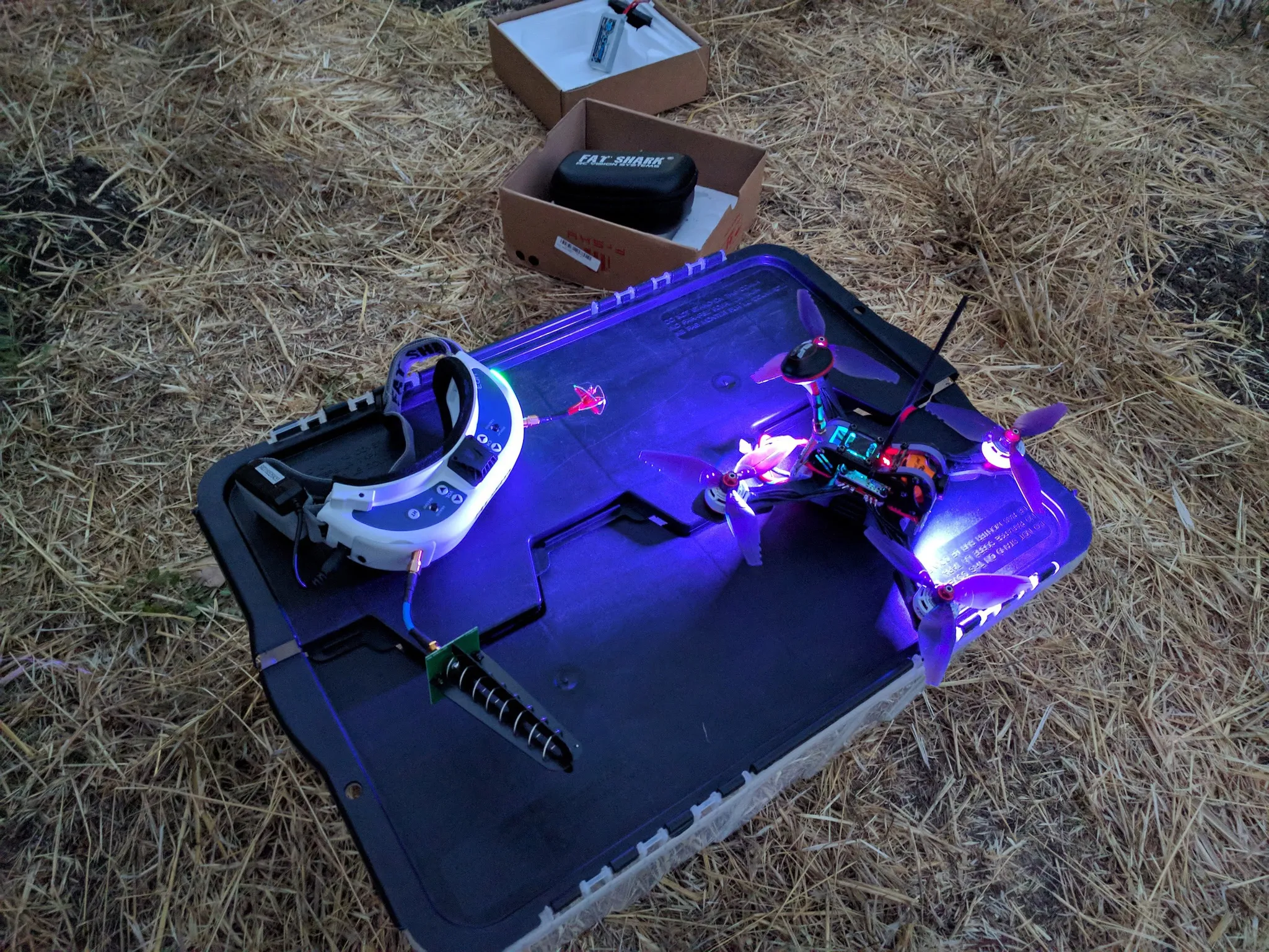 I picked up this awesome helical antenna, but a patch antenna pry makes more sense, as it’s compact and has almost as high gain (8dbi for the patch vs 11dbi for the helical). Either way, the goggles don’t fit in the case with the antenna attached, so It doesn’t make much difference.