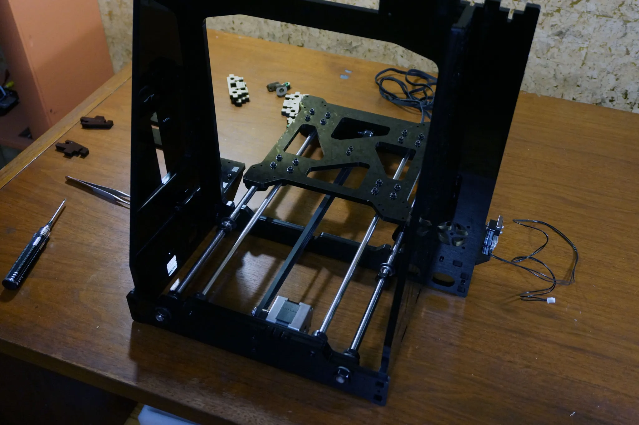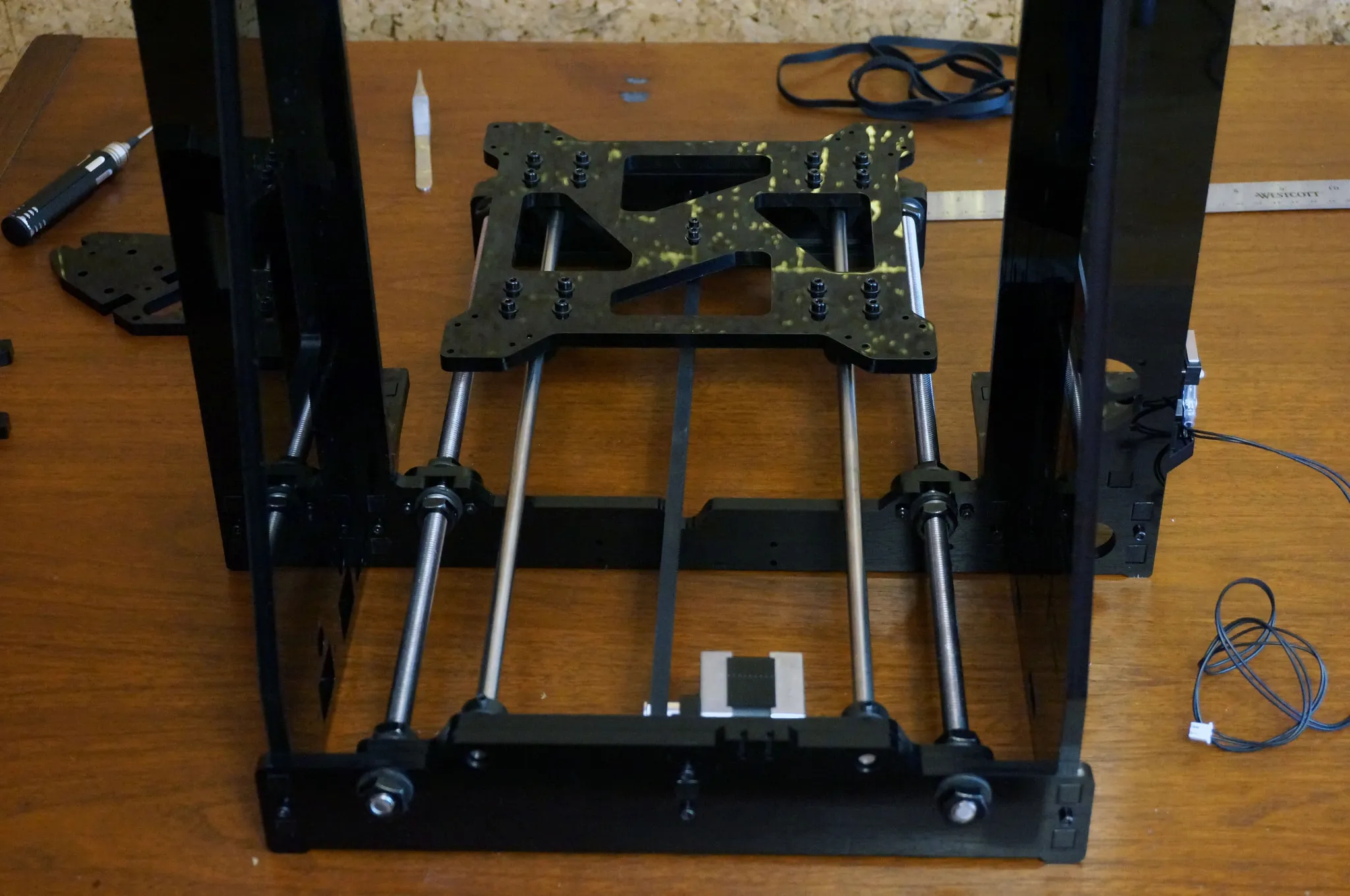 Use blue thread lock wherever you have metal on metal, however the blue thread lock will degrade the acrylic frame, so be sure to not let the thread lock touch the acrylic! The only places I was able to safely use lock tight was on the motor couplers.