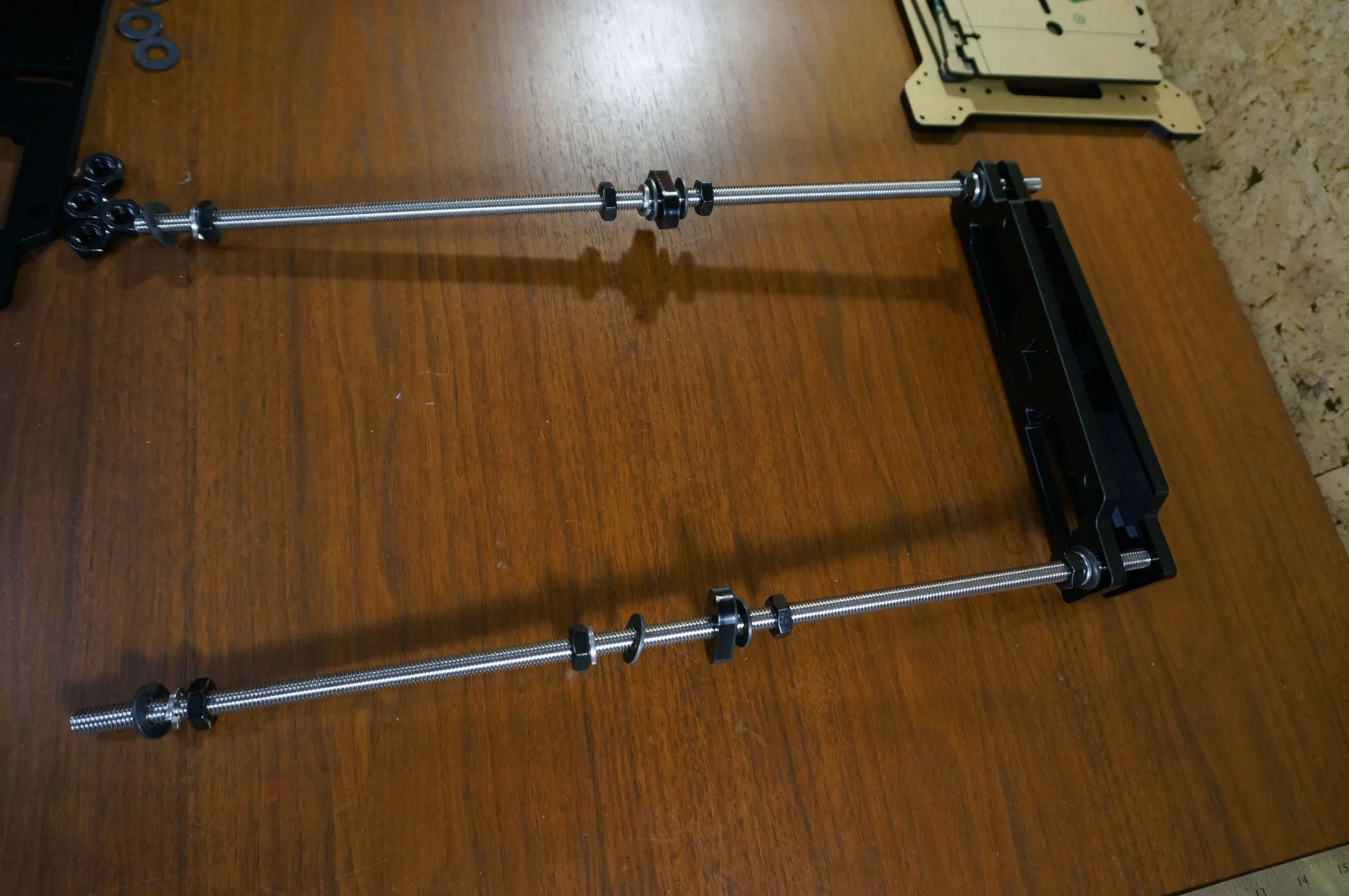 On this step, I got everything assembled, then used a ruler to make sure both sides were square. Adjust the outer-most nuts if one side is longer or shorter than the other.