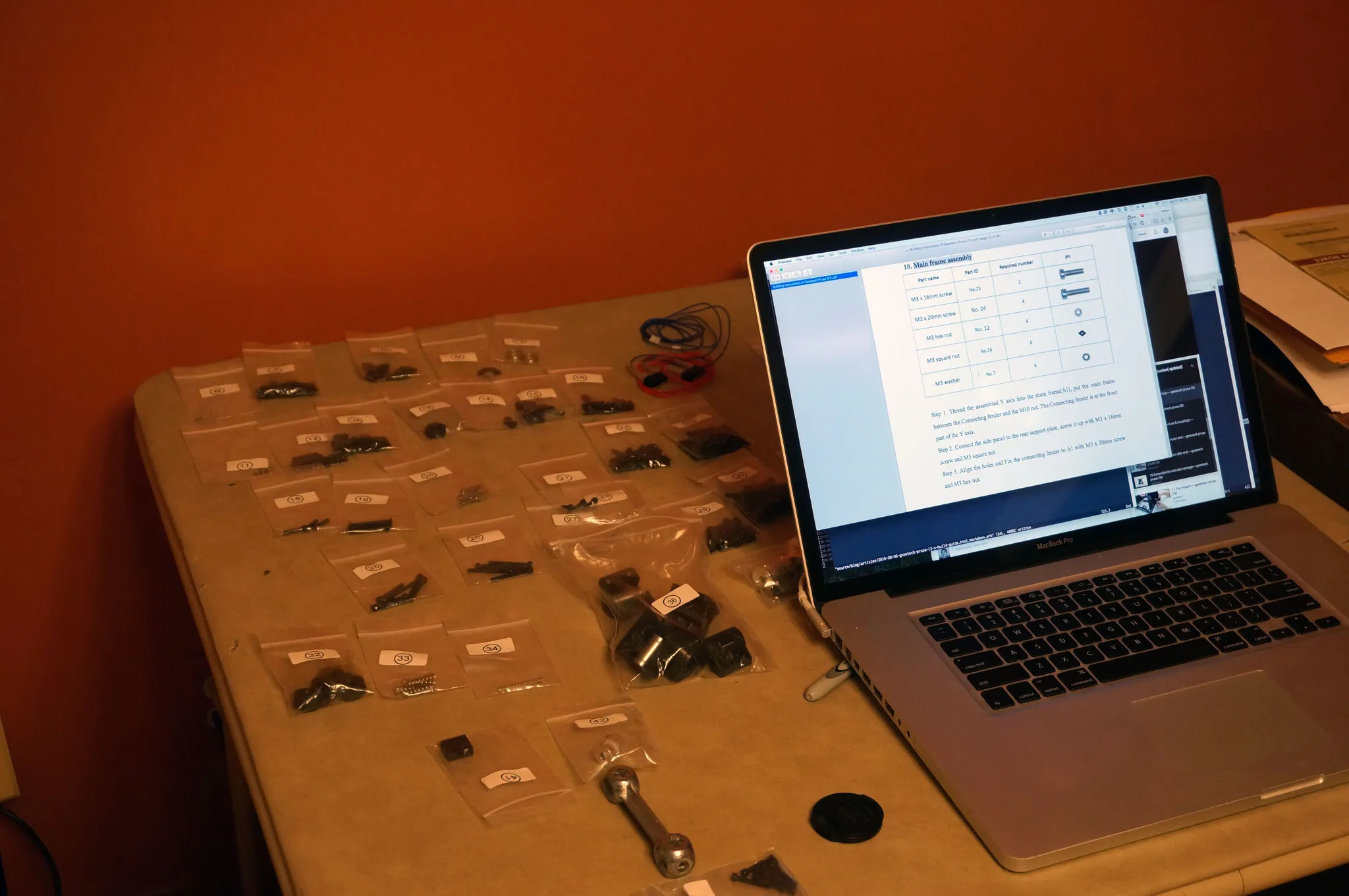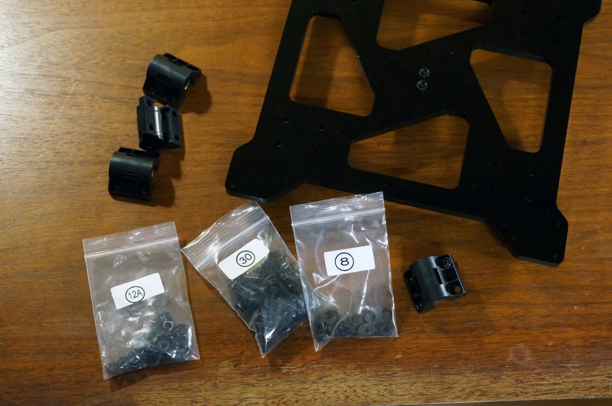 Also, they don’t mention this, but bags 7 and 8 include 3mm and 4mm washers, use them whenever bolts in bags numbered 22, 23 and 30 are used. This will help strengthen the frame.