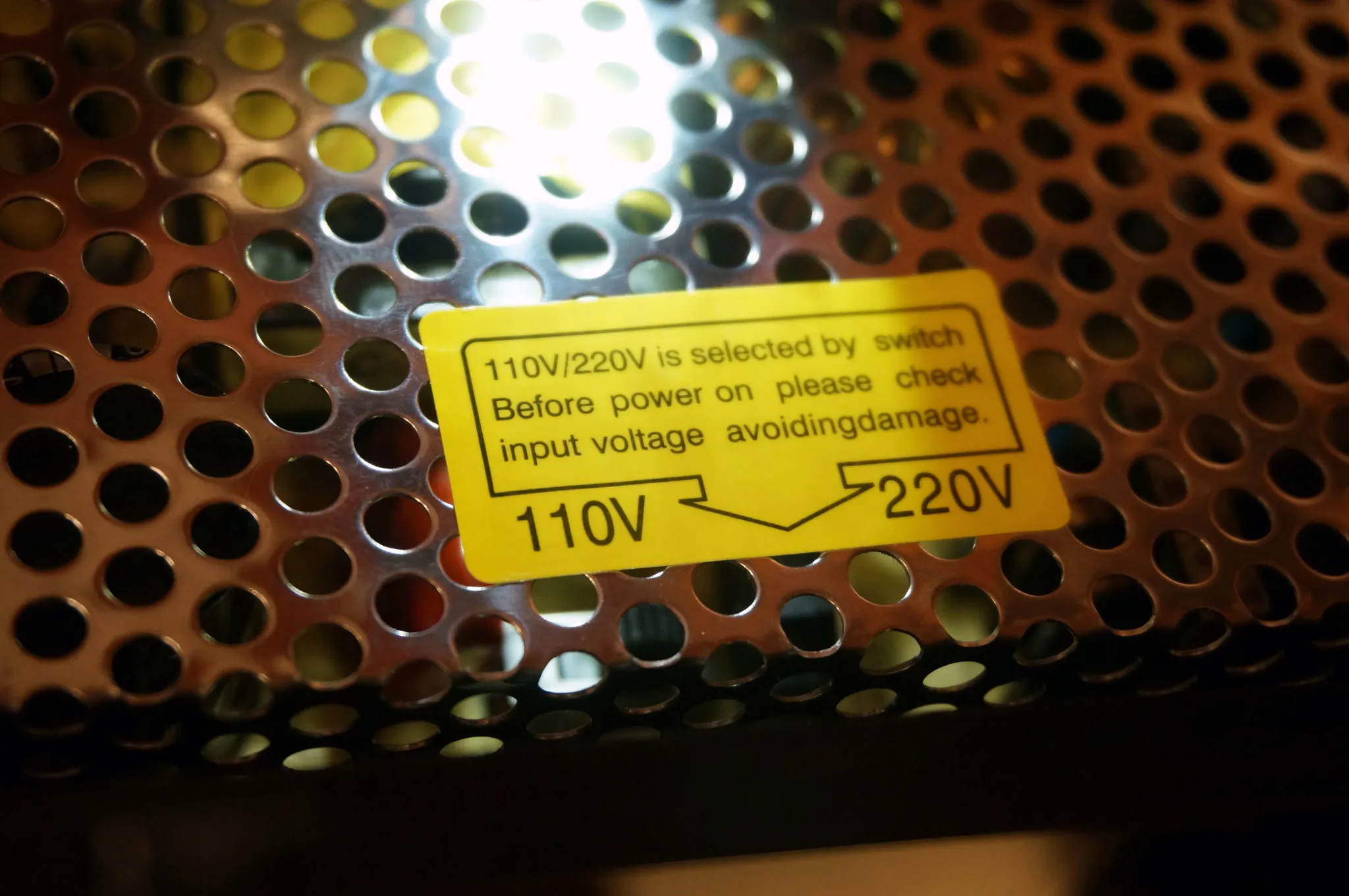IMPORTANT! There is a switch inside the power supply that will change it between 110 and 210 volts.