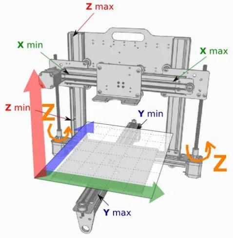 In this guide, I’ll refer to the axis of the printer as described in this diagram.