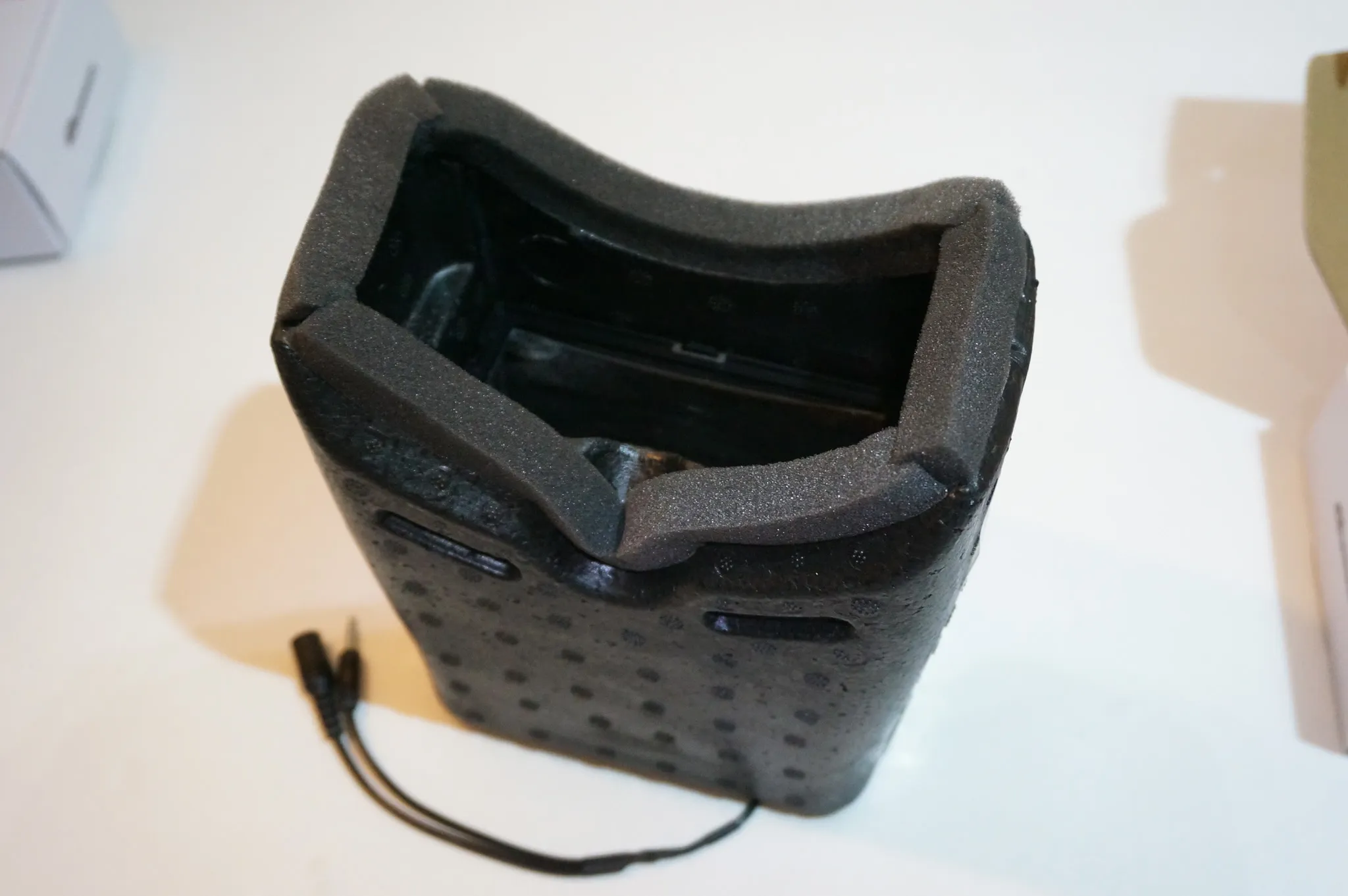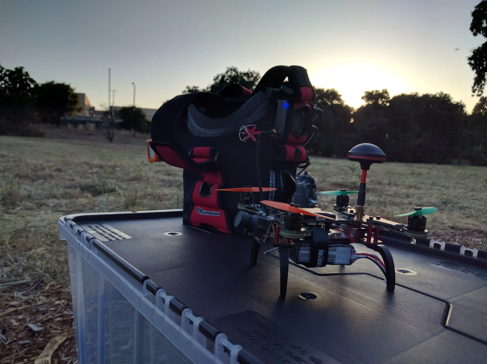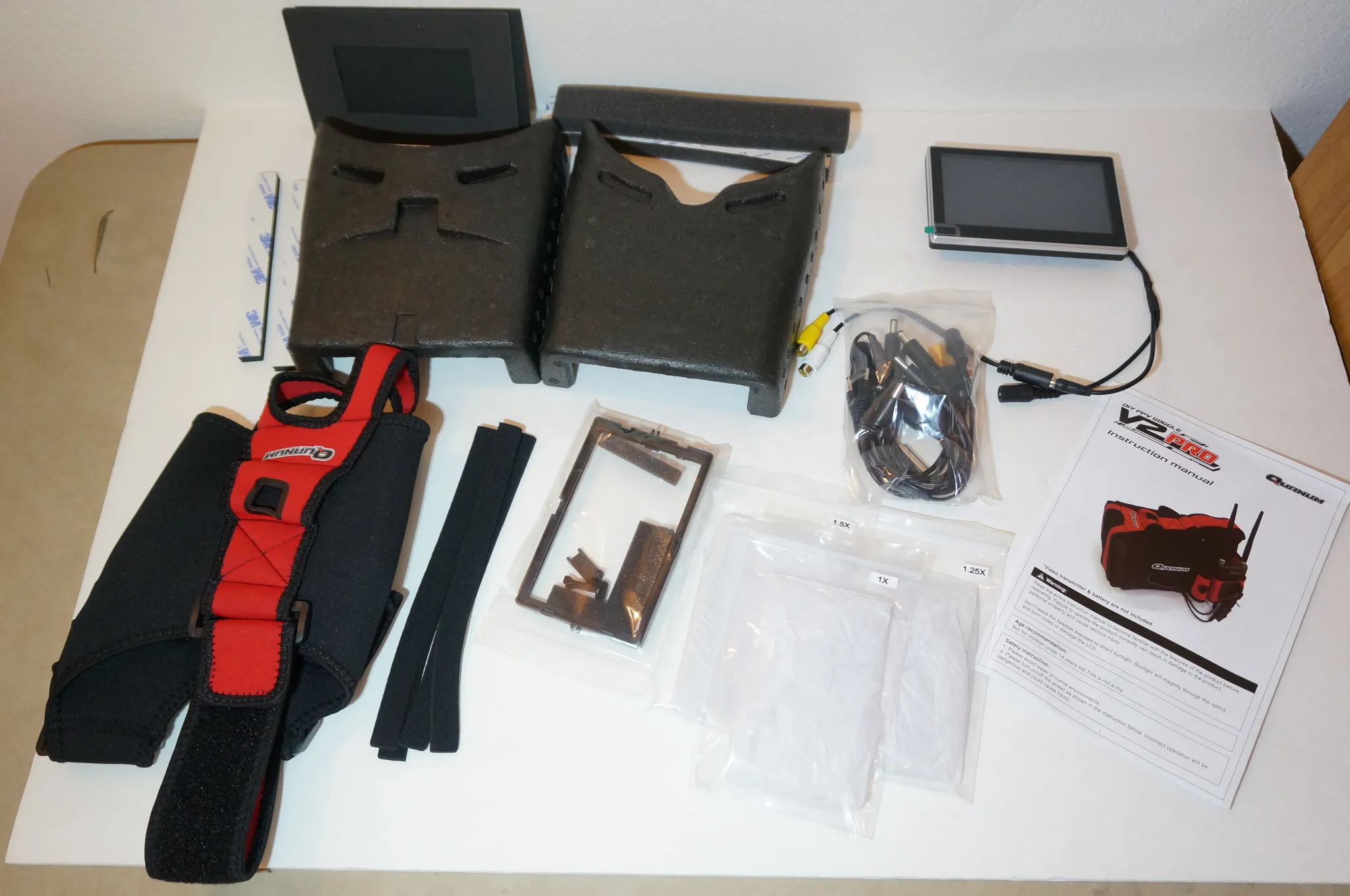 The build process affords some flexibility, but it could be a downside if you’re not into some simple DIYing. If head-comfort is important, you can customize the shape of the goggles to fit your face. I probably should have added some extra padding around the cheeks, since everyone who tried on my pair of Quanums complained about a squashed nose. Other than that, they loved these goggles for the light weight and monitor clarity. The only other downside is the size. It’s great for when you’re using them, but it’s far less convenient for transportation. They need a big case, mine travel in that giant tub pictured above.