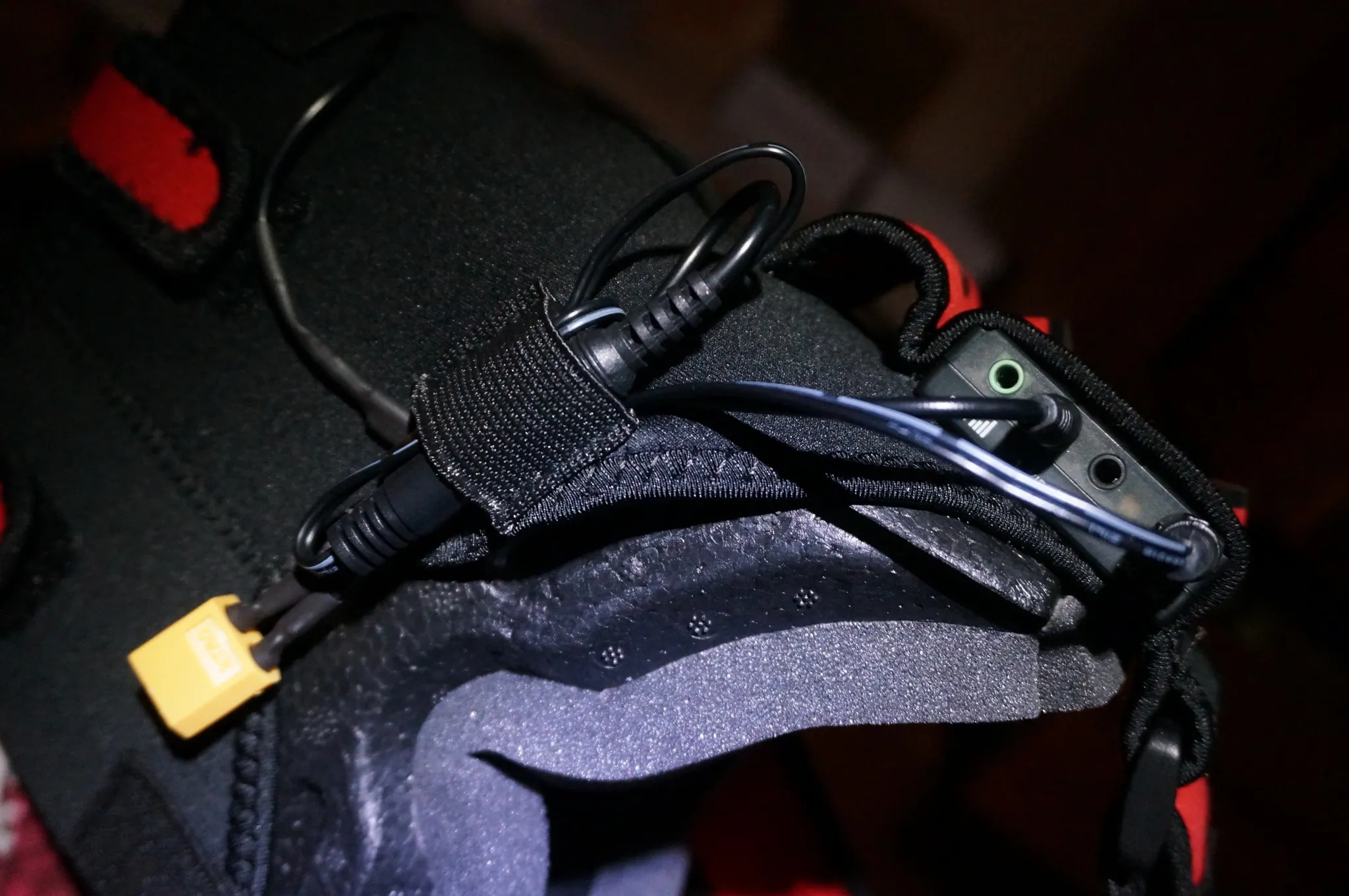 Finally, install the receiver in the pocket and route the cables through the loops on the bottom: