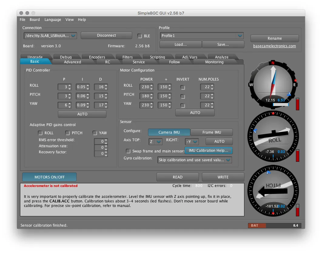 In SimpleBGC GUI, you’ll notice these gauges on the right: