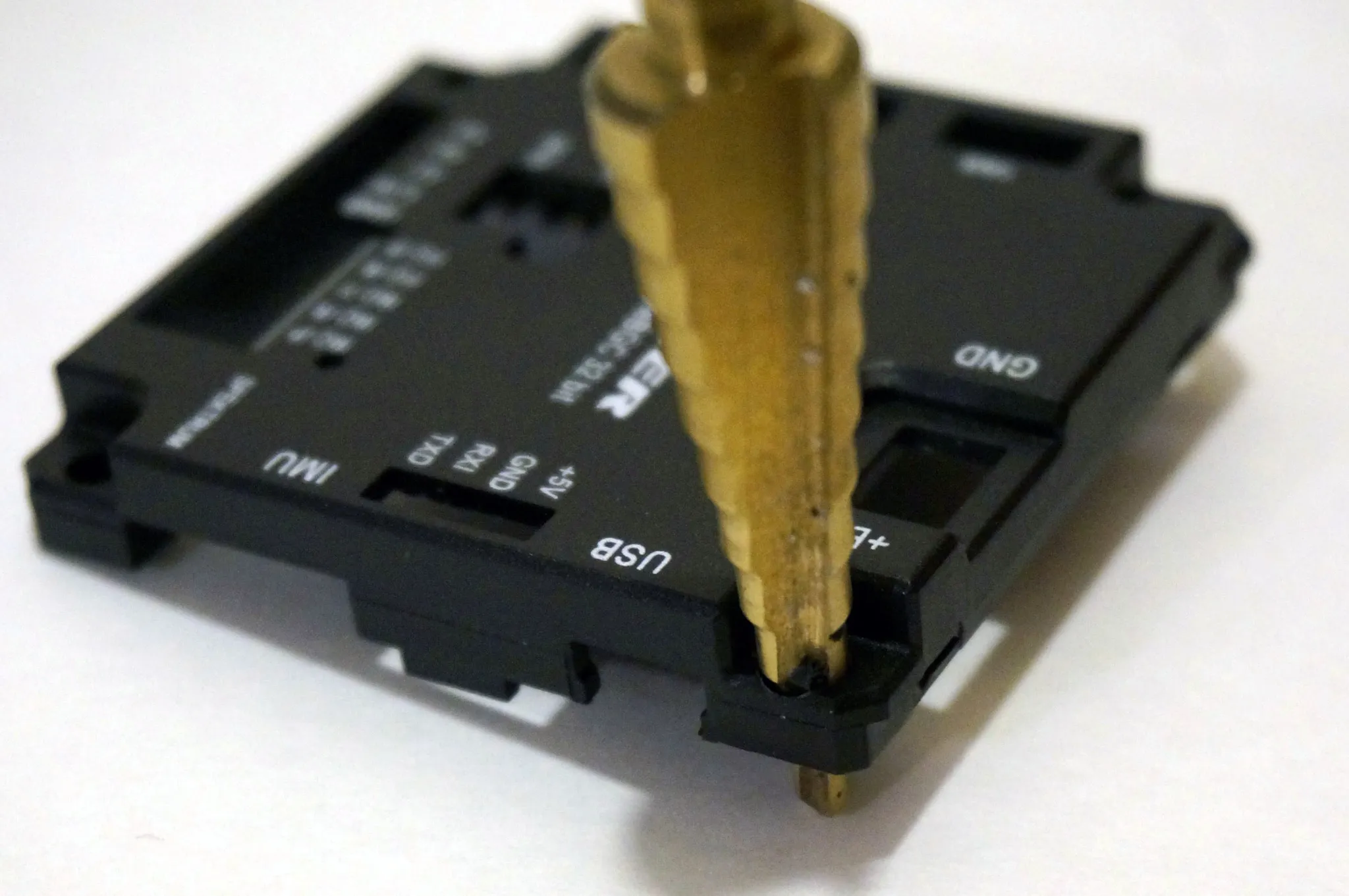 Install the Gimbal Controller. I needed to modify the case a little to use the shorter screws I had on hand. I used a hand reamer to open the top screw holes up to 5mm. Alternatively, get longer screws or just take off the plastic case.