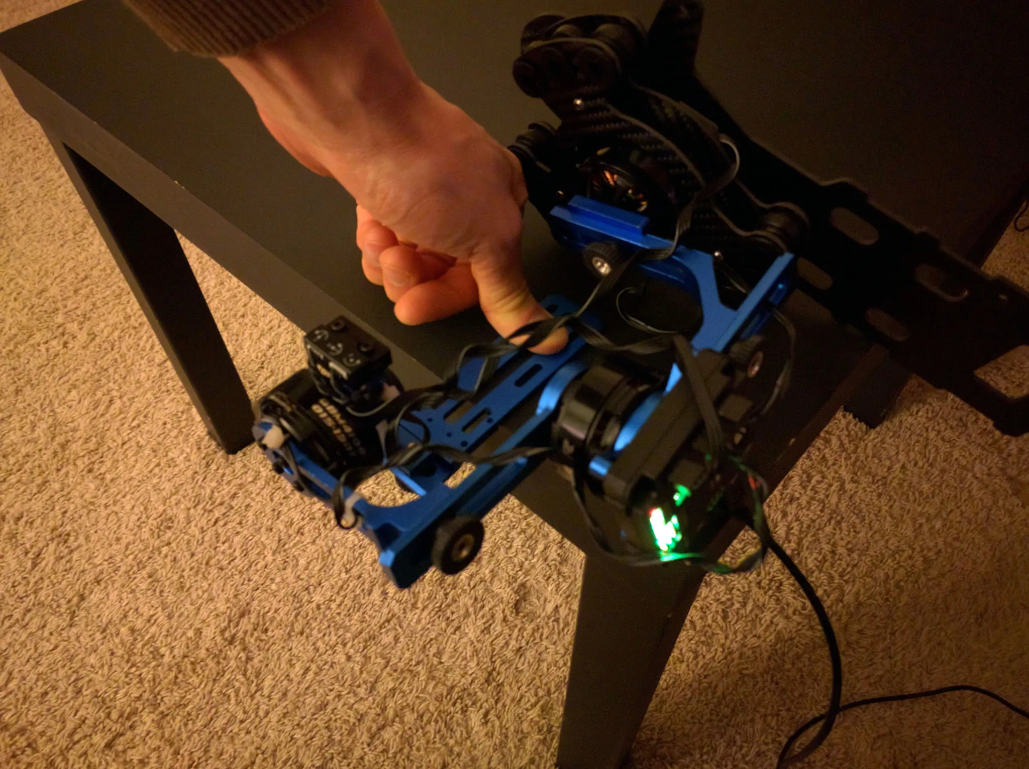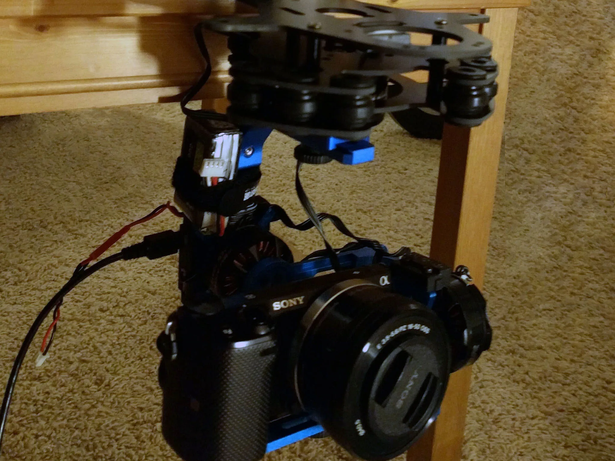 Clean up your wires with some zip ties, while ensuring that the gimbal can rotate to the endpoints you want to be able to reach. Coiling up the wire also helps keep things neat.