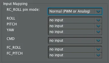 Also, make sure that on the RC tab, the Input Mappings are all set to no input you can adjust this later if you’re using a remote control to steer the gimbal.
