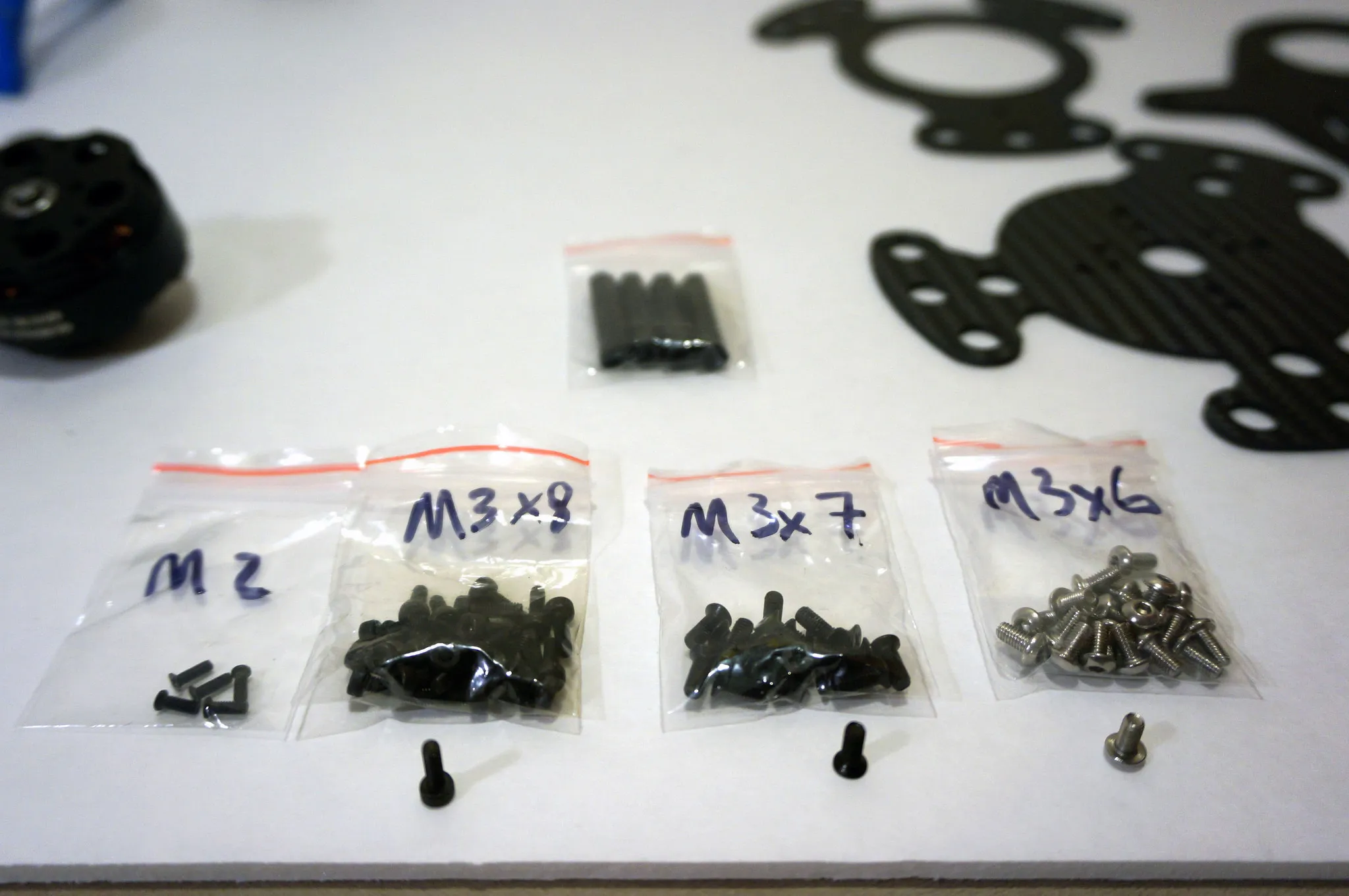 Note the M3x7 have countersink heads and the M3x6 are silver.