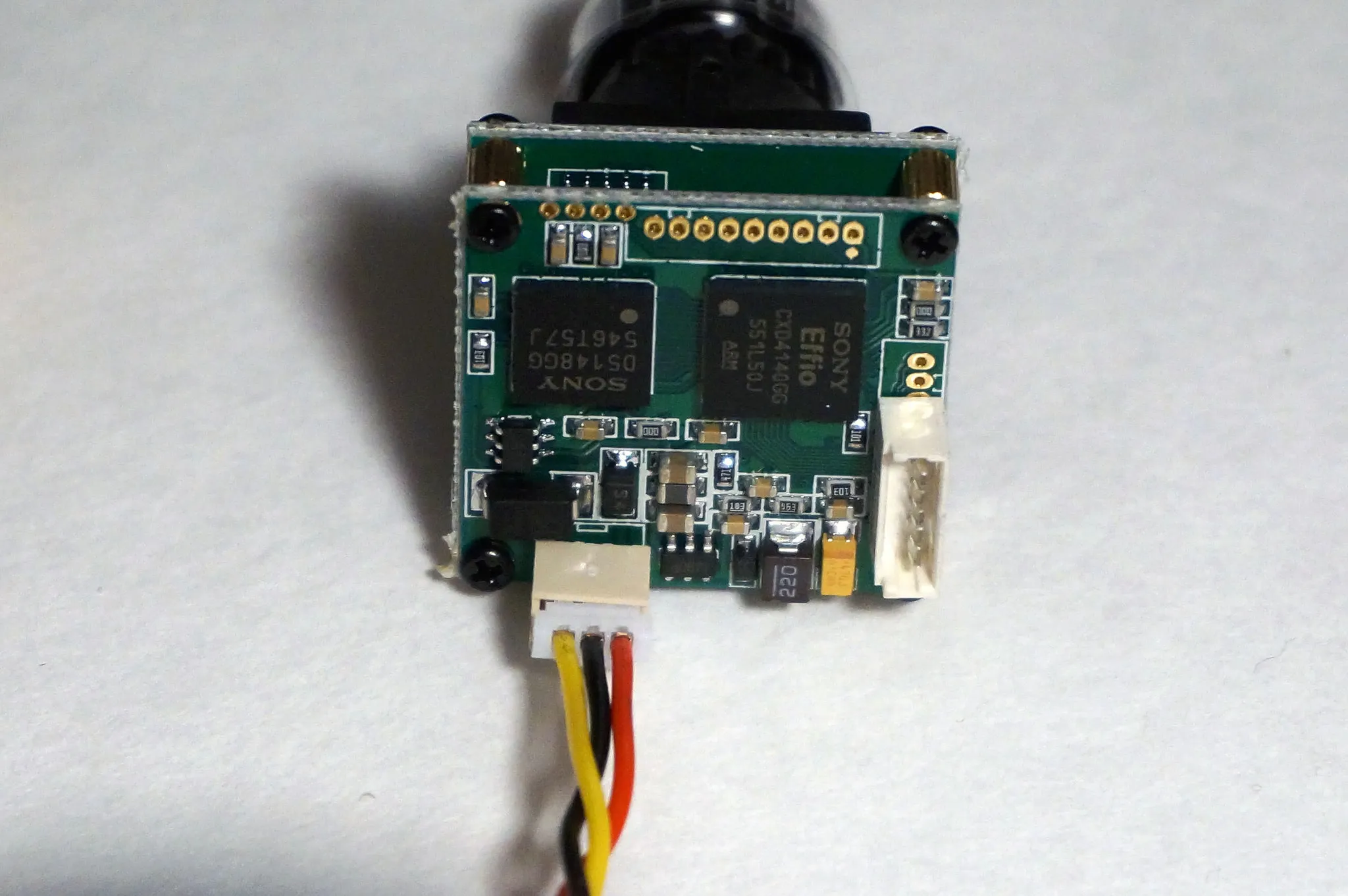 Before you apply power to the camera, make sure the video signal is closest to the outside and the power is on the inside like the photo below. Reversing these will break your camera.