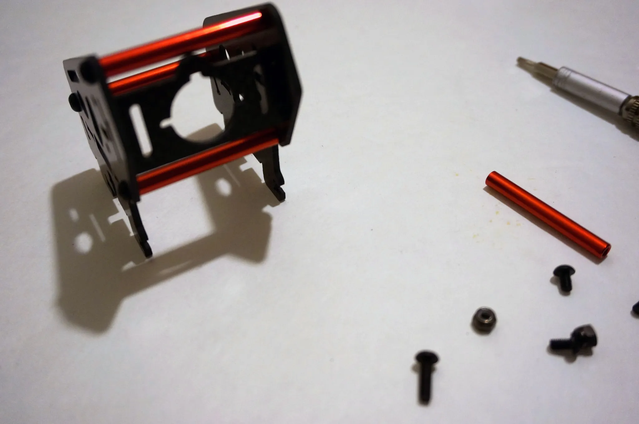 A proper hex driver set. You’ll need something that fits a 2.0mm hex socket head. I broke two right angle allen wrenches trying to screw the carbon plate to the plastic pieces of the quad-copter frame.