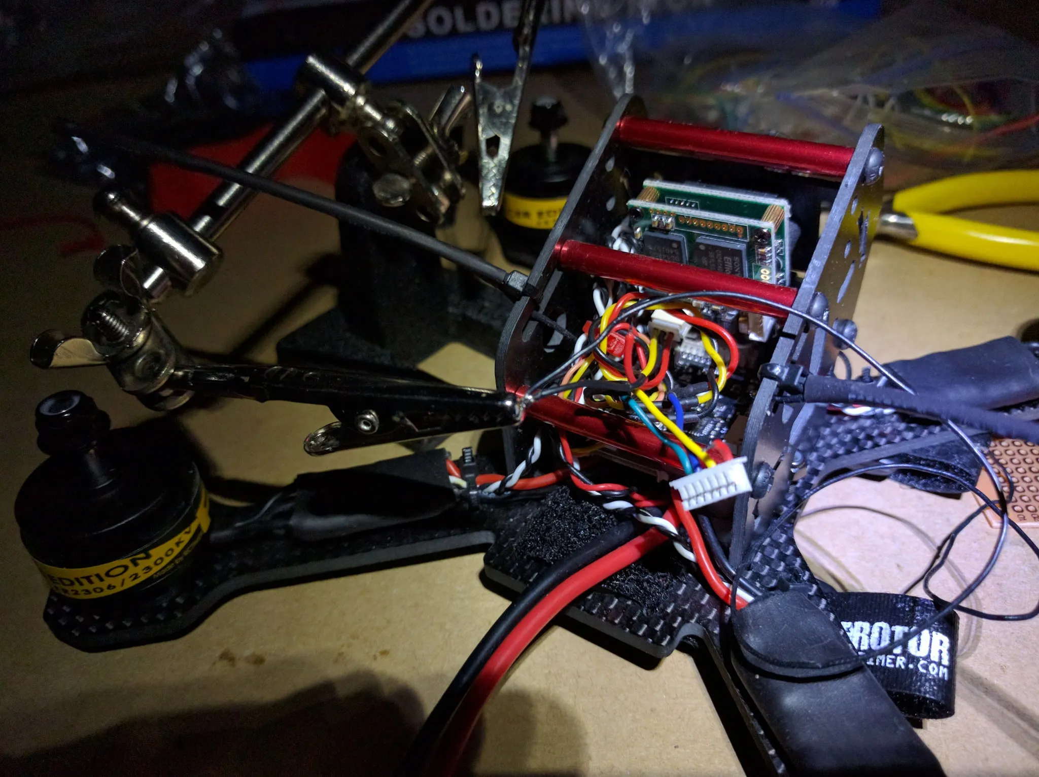Now remove the body and solder the motors to the ESCs. First, trim the motor wires. I trimmed them to 20mm.