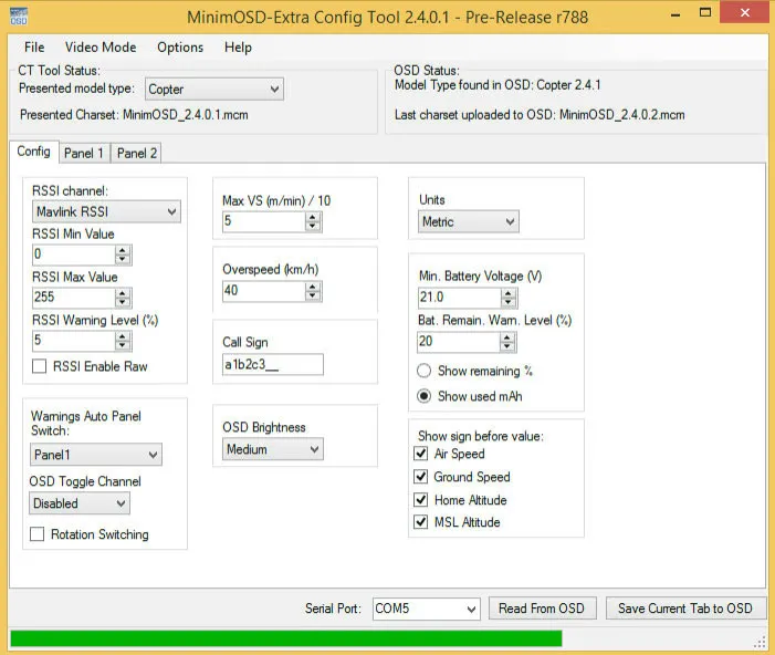 Here’s what the settings look like in APM Planner 2.0