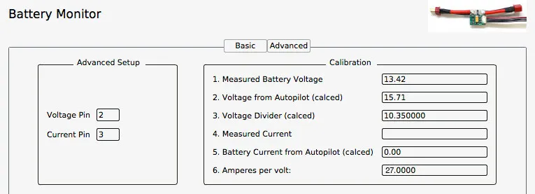 Voltage and current monitor configuration can be found under Inital Setup -> Optional Hardware -> Battery Monitor -> Advanced