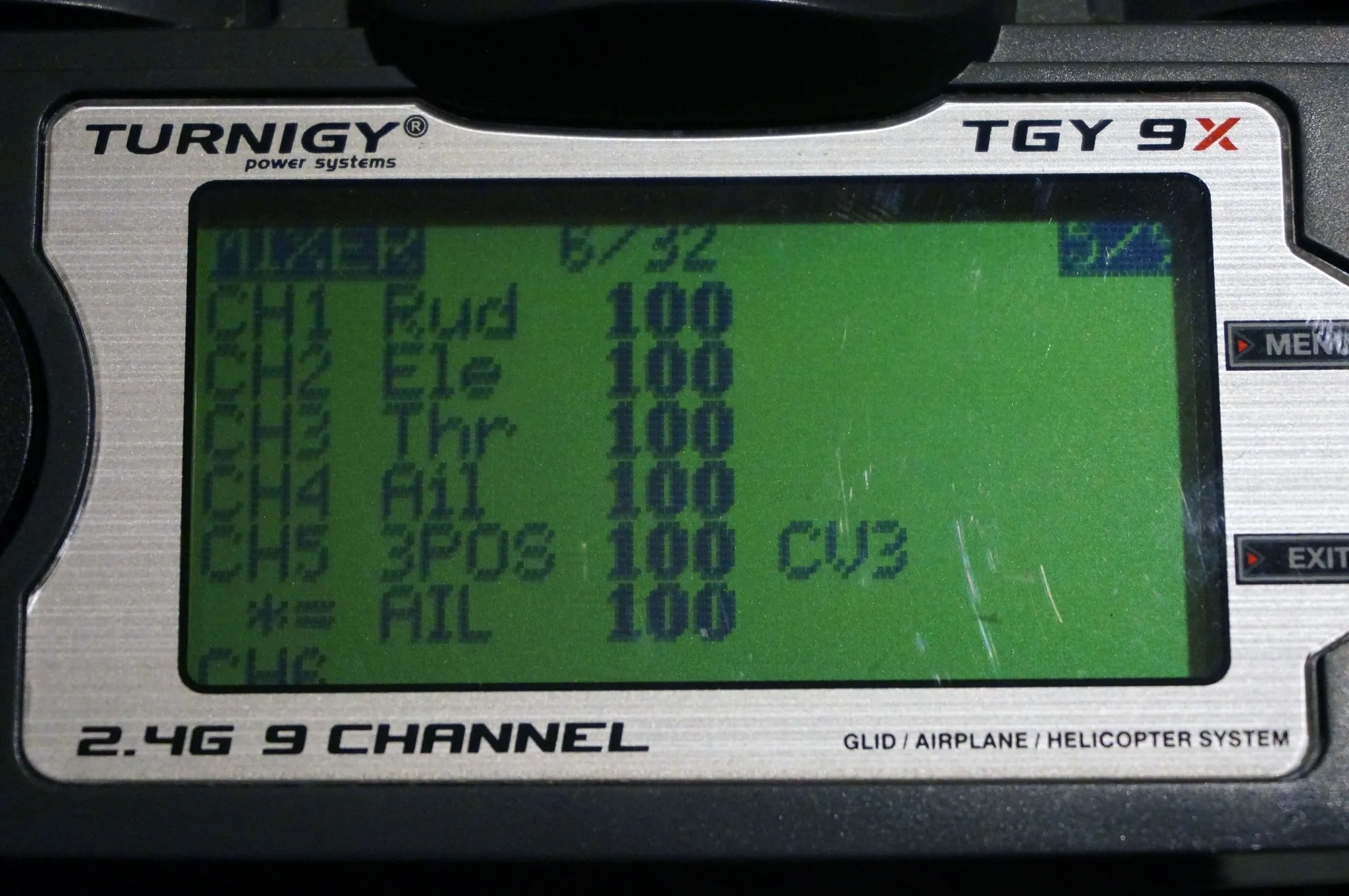 When you get to the RC calibration screen, disable the CURVE you set on channel 5 by setting it back to the default value while you set the endpoints on all channels. When you’re done, turn CURVE 3 back on.