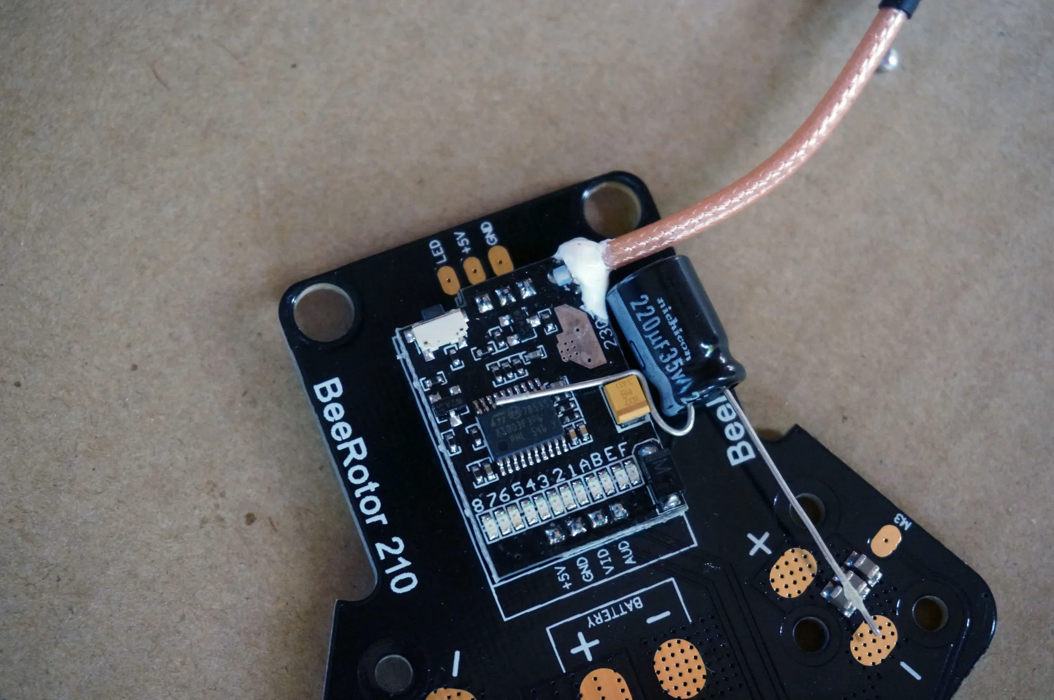 Since a capacitor is included, let’s go ahead and solder it onto the VTX.