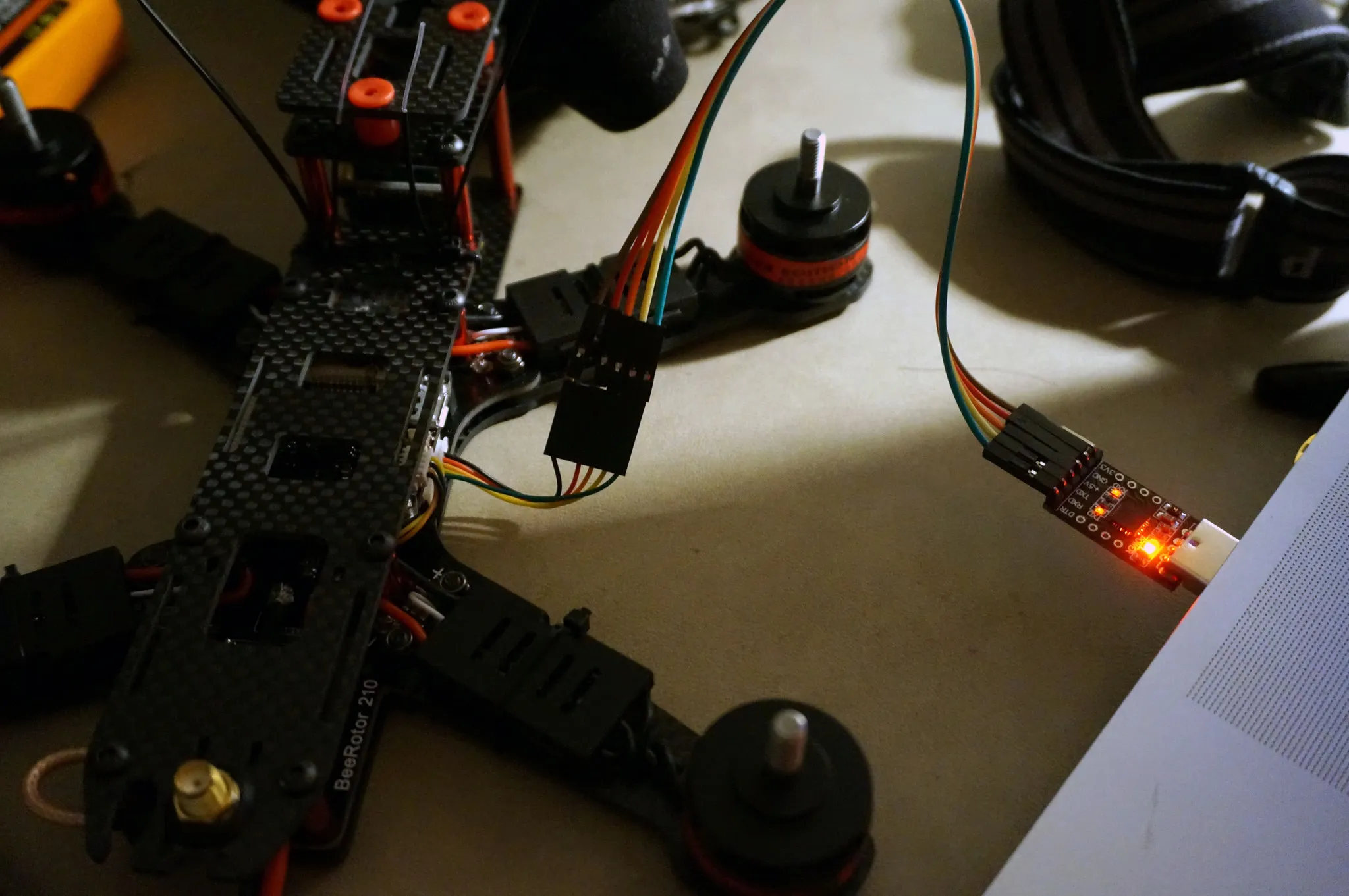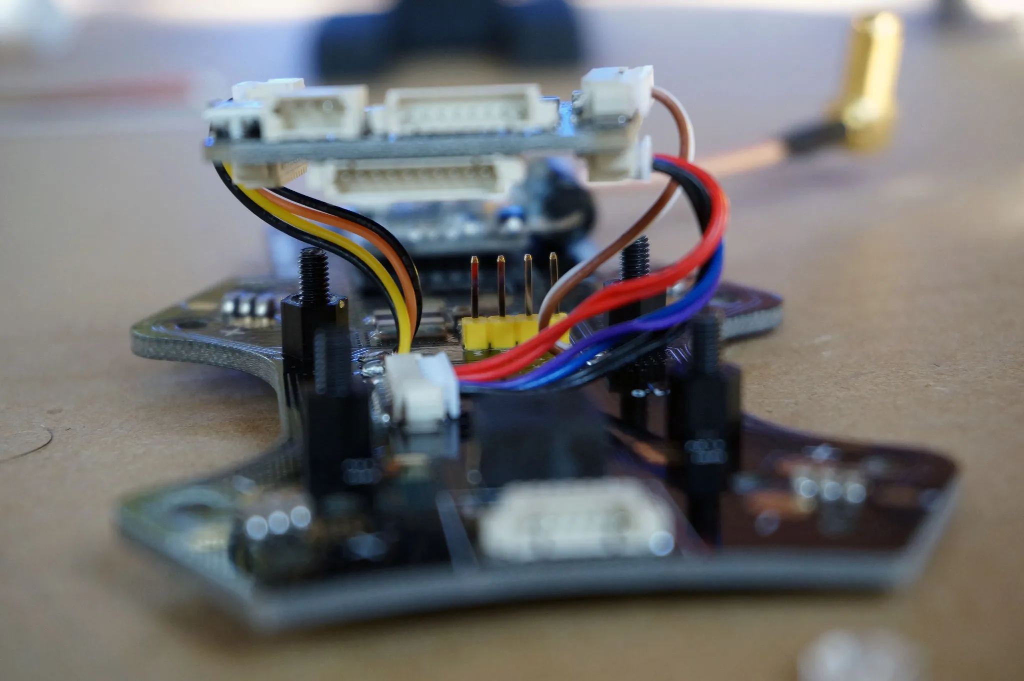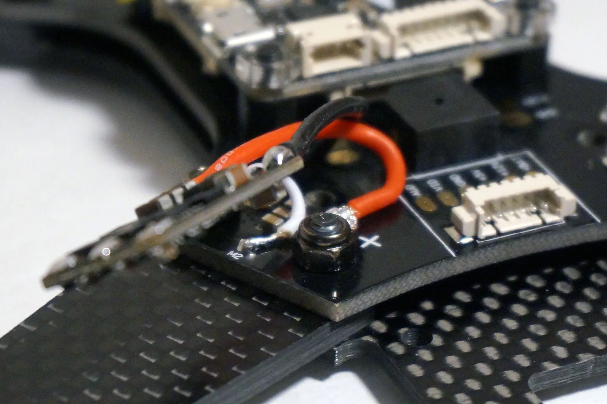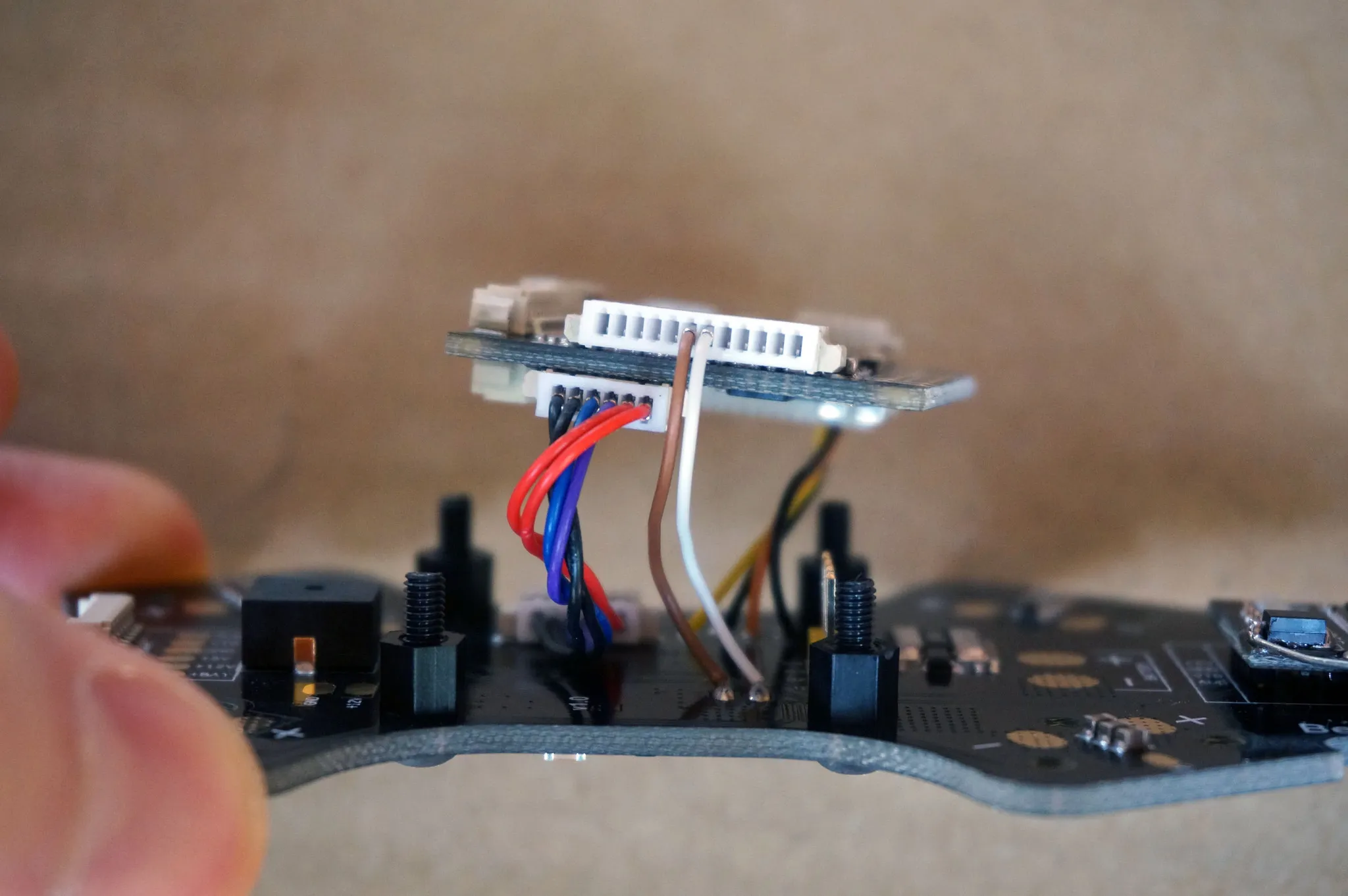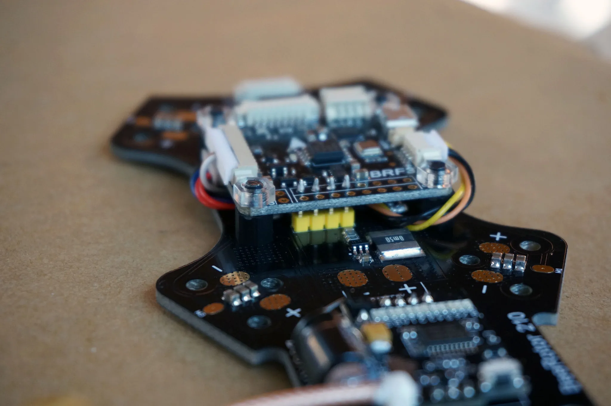 Unfortunately, this requires soldering the flight controller to the PCB, which makes it a little harder, but not impossible to remove later. I think it would be nicer if instead, we soldered headers on the flight controller and used wires that were soldered to the PDB and terminated in 2.54mm female jumpers, much like how the video, beeper, led and power pins are set up.