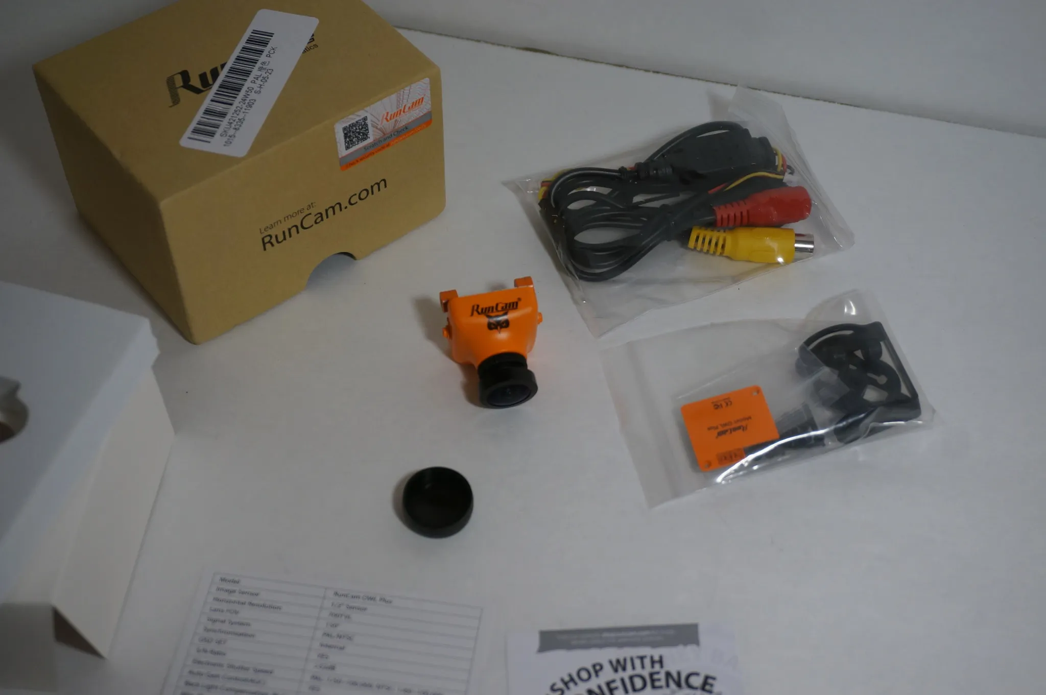 It comes in this nice box. Looks like RunCam is trying to prevent clones with this “Scratch and Check” the authenticity sticker.