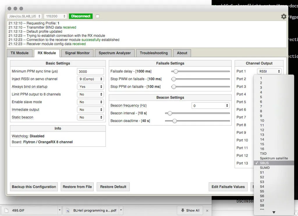 While I’m using PPM at the moment, I plan to hook up Serial RX full telemetry! Look for this in a future post.