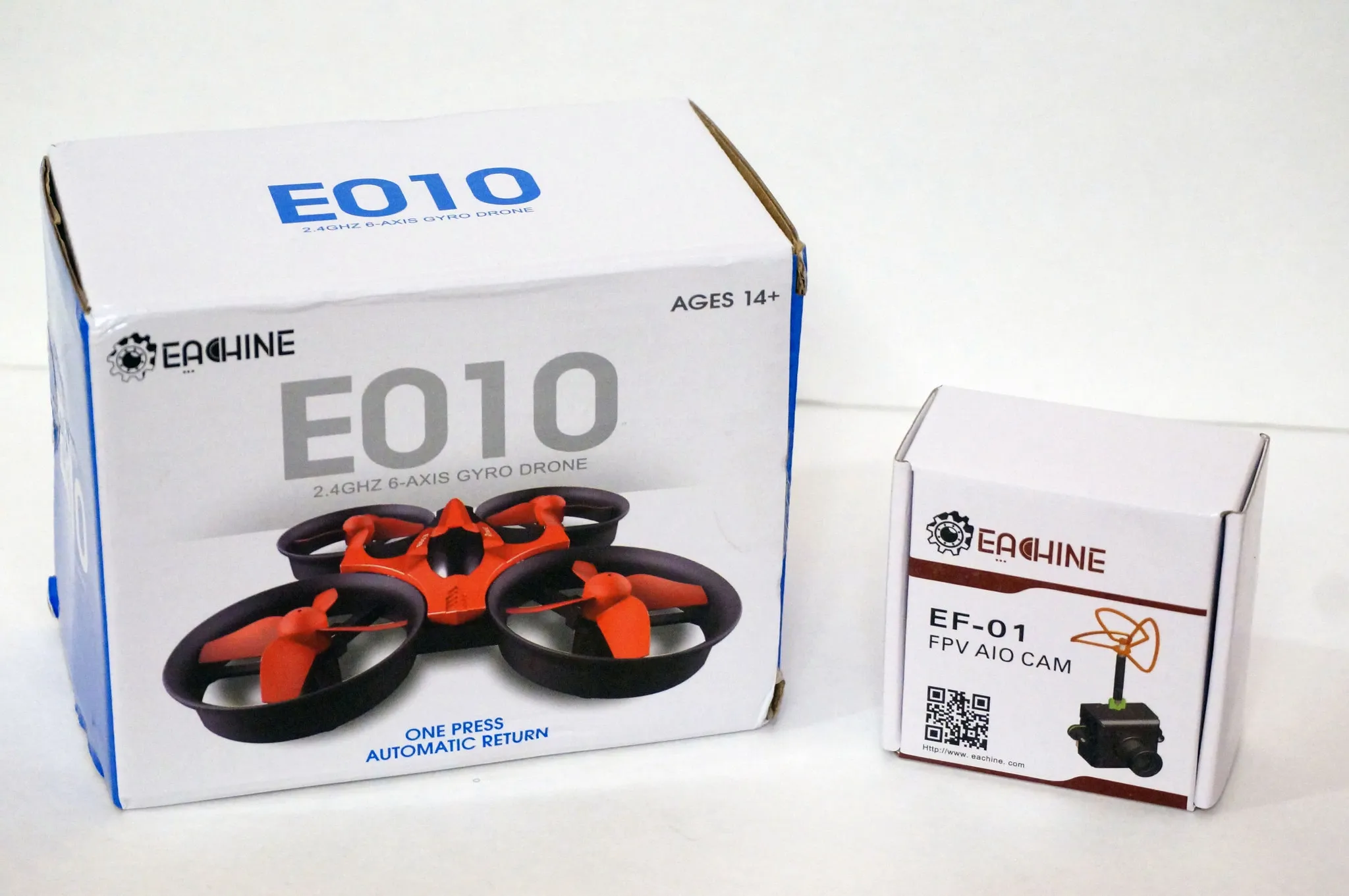 The Eachine E010 Quadcopter and Eachine EF-01 FPV camera.