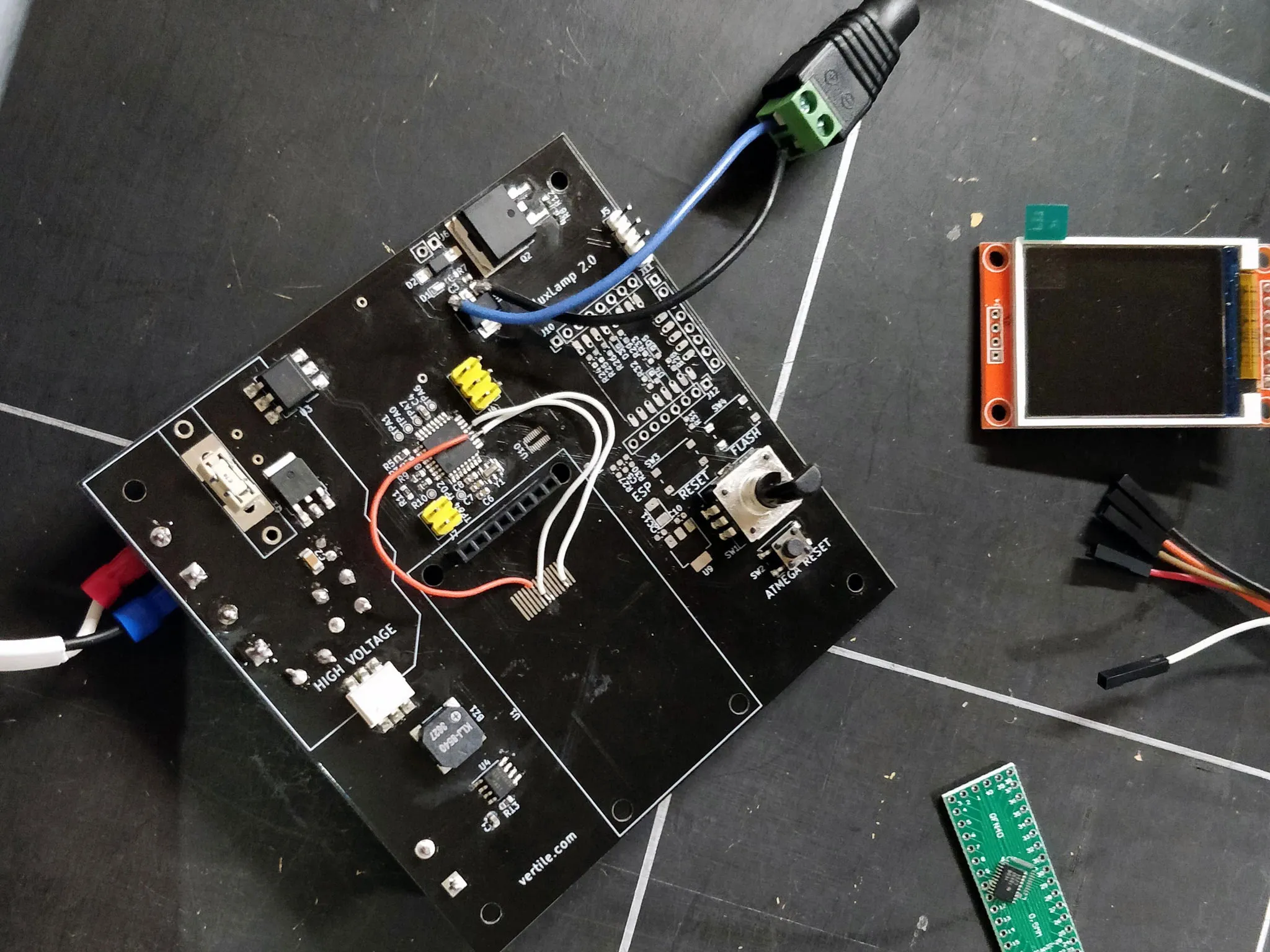 I slowly built up and tested each subsystem until the board was ready. You can see from the jumper wire, I wired a pin incorrectly. You can also see that I have 2 boards in the photo. Each has a different subsystems populated so that I can easily test and debug these subsystems independently. For the test, I wrote simple Arduino sketches that do things like buzz the buzzer, show a graphic on the LCD or read the rotary encoder.